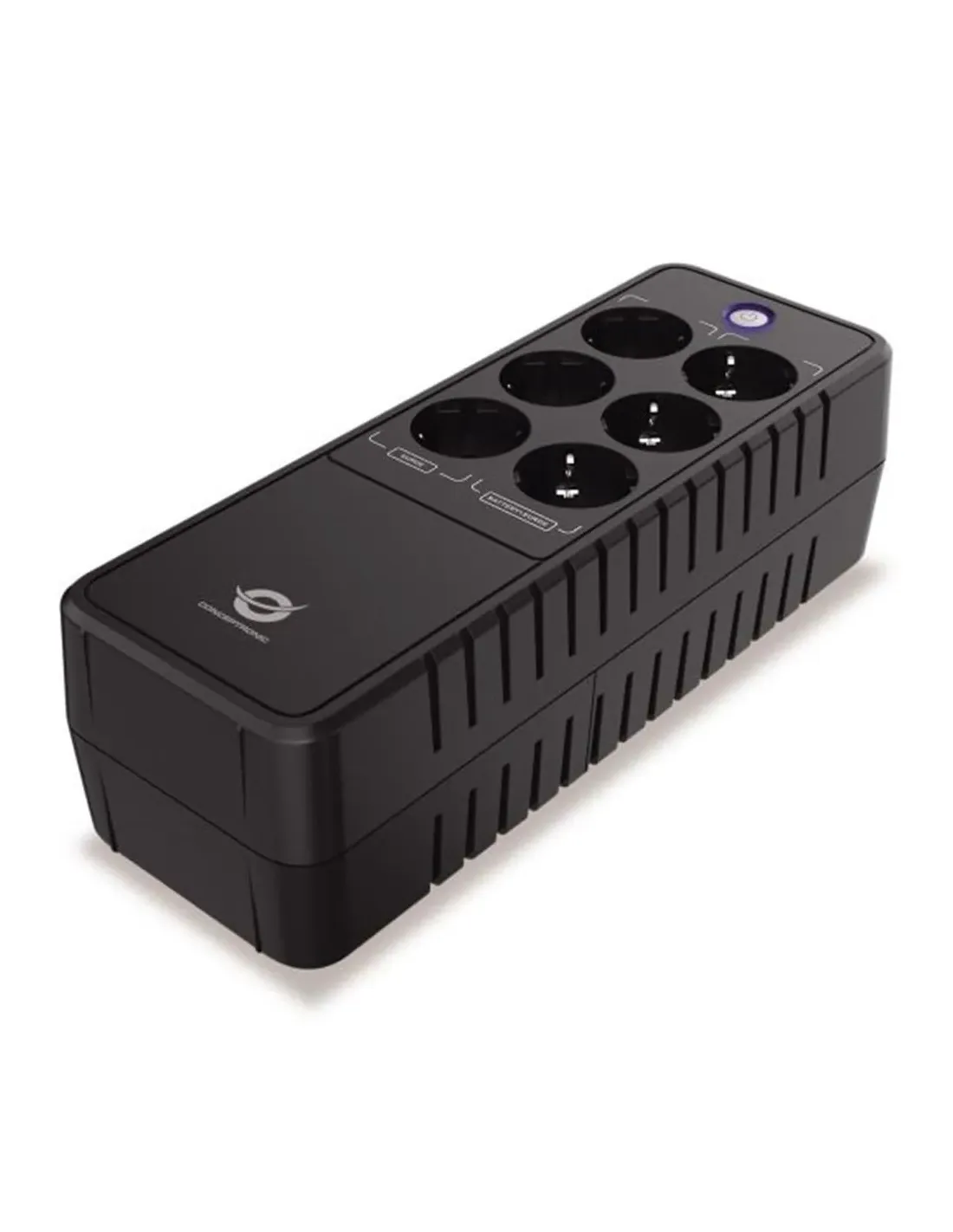 ```- GENERALColor NegroModelo ZEUS09ETipo de UPS Standby (Offline)Protección Interruptor automático o protección por firmware internoAprobación y conformidad CE, RoHSAlarma Modo batería, batería baja, sobrecarga, falloIndicadores LEDInterruptores/Botones Encendido/Apagado, Reset- POTENCIACapacidad de salida 850 VAVoltaje de entrada 220 - 240 V CAVoltaje de salida 220 - 240 V CA- BATERÍACapacidad de la batería 6000 mAhCapacidad de la batería 72 WhVoltaje de la batería 12 VTiempo de recarga (90%) 8 h- PUERTOS E INTERFACESConfiguración de puertos 3 x Schuko (protección contra sobretensiones) 3 x Schuko (protección contra sobretensiones y respaldo por batería)- CONDICIONES AMBIENTALESTemperatura de funcionamiento 0°C ~ 40°CHumedad relativa de funcionamiento 0% ~ 90% RH- DIMENSIONES Y PESODimensiones (Ancho x Profundidad x Altura) 110 x 309 x 90 mmPeso del producto 2.94 kg- EMBALAJEContenido del paquete ZEUS09E, guía de instalación rápida multilingüe- DATOS LOGÍSTICOSCódigo del Sistema Armonizado (HS) 850440Código de producto aduanero (TARIC) 8504406090```