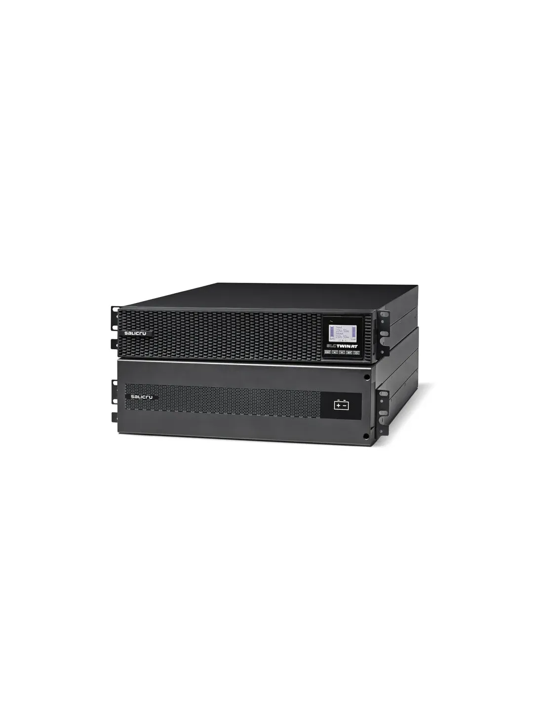 SAI IoT On-line doble conversión torre/rack de 4 kVA a 10 kVA con FP=1Eficiencia y fiabilidad para la protección de datos críticosLa serie SLC TWIN RT3 de Salicru comprende Sistemas de Alimentación Ininterrumpida (SAI/UPS) de 4 a 10 kVA, con excelentes prestaciones de protección eléctrica para entornos críticos de servidores. Aunque su naturaleza sea la integración en armarios rack, incluyen todos los accesorios y adaptabilidad para ser dispuestos en formato torre. En los modelos a partir de 4 kVA, se incluye una regleta que puede montarse ya sea en disposición rack, como sujeta al cuerpo del SAI, si se opta por el formato vertical. Esta regleta, también conocida como PDU (power distribution unit), extiende al máximo la conectividad eléctrica del equipo, facilitando la conexión/desconexión rápida de las cargas a proteger.En la parte de interacción directa con el usuario se ha optado por una pantalla matricial (Dot matrix) que facilita realzar la información importante en el centro de la pantalla, a diferencia de las tradicionales pantallas LCD.Fiabilidad, densidad de potencia e inmediatez de la información han sido 3 de los elementos clave en la definición de la serie SLC TWIN RT3, considerando que estos 3 factores son los que más satisfacen las exigencias del usuario, hoy en día.Conectividad y protección vigilanteLa inclusión de un puerto ethernet y la opción del dispositivo wifi, permiten integrar la serie SLC TWIN RT3 al entorno IoT. A través del cloud, nuestra APP NIMBUS y la web, desarrolladas íntegramente en el departamento de Connected Software de SALICRU, ofrecen la máxima supervisión del estado de los equipos, recepción de información y alarmas, ejecución de test de baterías remotos, ...La inmediatez que nos proporciona la conectividad, asegura de forma directa la continuidad de las cargas conectadas y, en consecuencia, la continuidad de la productividad a ellas asociada.A nivel de hardware, un dispositivo de corte por sobretensión (OVCD), un sistema de detección de bloqueo de ventiladores, la detección de sobretemperatura, la alarma de sobrecarga y el sistema de detección de baterías externas, garantizan una constante vigilancia automatizada de nuestro sistema.Longitud mejoradaEn muchos casos, la profundidad de los armarios tipo rack de 19” suele ser un factor de peso. Esta particularidad nos ha llevado a plantear como factor clave, en el diseño de la gama SLC TWIN RT3, la reducción de sus dimensiones en el eje Z manteniendo siempre la altura de 2U x 19” en el frontal de los SAIs. Como resultado ofrecemos una gama de alta densidad de potencia, limitada a tan solo 600 mm de profundidad, a parte se suministran las correspondientes baterías en un formato 3U de profundidad también reducida.Múltiples opciones de salidaLa serie SLC TWIN RT3 dispone de diferentes opciones de conexión para las cargas. Los equipos a partir de 4 kVA, a parte de ofrecer 2 salidas de conexión rápida IEC C13 y un bornero de entrada/salida, se entregan también con una regleta enrackable que dispone de 8 salidas adicionales (6 x IEC C13 + 2 x IEC C19). La regleta dispone de clips de cierre de seguridad para una correcta sujeción de los conectores eléctricos y puede ser montada, mediante los accesorios suministrados, en el lateral del SAI.Gestión avanzada de la temperatura internaSLC TWIN RT3 de 4 a 10 kW dispone de dos baterías de ventiladores para optimizar las condiciones térmicas en el interior del equipo. La batería frontal actúa a modo de impulsión, mientras que la posterior extrae el aire de forma inmediata. Este doble sistema incorpora ventiladores de velocidad variable para equilibrar la eficiencia de ventilación con el consumo energético.La mejora de condiciones térmicas incide favorablemente en la elongación de la vida de los componentes, a la vez que crea el entorno adecuado para que el equipo lleve sus prestaciones al máximo.La precisión en la ingeniería de este sistema ha permitido mantener el equipo a niveles de ruido óptimos, en condiciones de carga típica, pese al incremento de la capacidad de intercambio de aire.Bypass Manual conectable BM-REl opcional por excelencia de esta serie es el módulo de bypass manual externo. Este bypass nos ofrece gestión de las baterías conectadas, posibilidad de manipular el SAI conectado sin necesidad de interrumpir el suministro de red aguas abajo y, como prestación más importante, incorpora 2 grupos de salidas programables para asignar a las cargas críticas y cargas secundarias, convenientemente.Este módulo externo dispone pues de 4 salidas IEC13, 2 salidas IEC19, repartidas por igual en dos grupos, y una salida de bornes.Puede montarse en formato rack tanto en la parte frontal del armario cómo en la posterior. Además viene con unas orejas de fijación que permiten abatirlo, sin desmontarlo, para poder operar en las conexiones de su parte posterior con la máxima comodidad.No terminando ahí la paleta de opciones, destacan también dos soportes metálicos que permiten su montaje en el lateral del equipo cuando el usuario lo disponga en formato torre.Opción de autonomías extendidasSLC TWIN RT3 mantiene las opciones de extensión de autonomía mediante módulos adicionales de baterías en formato rack de 3U.Los módulos se interconectan entre ellos y con el SAI mediante un sólido conector aéreo anderson y un cable RJ45, para su gestión inteligente.Las corrientes de carga y la tensión de bus son elegibles por el usuario adaptándose al máximo a la opción de autonomía que se disponga. Para las instalaciones que requieran más aportación de corriente en el ciclo de carga de baterías, existe la gama B1 dotada de un cargador de alta capacidad, manteniendo el formato 2U de la versión standard.