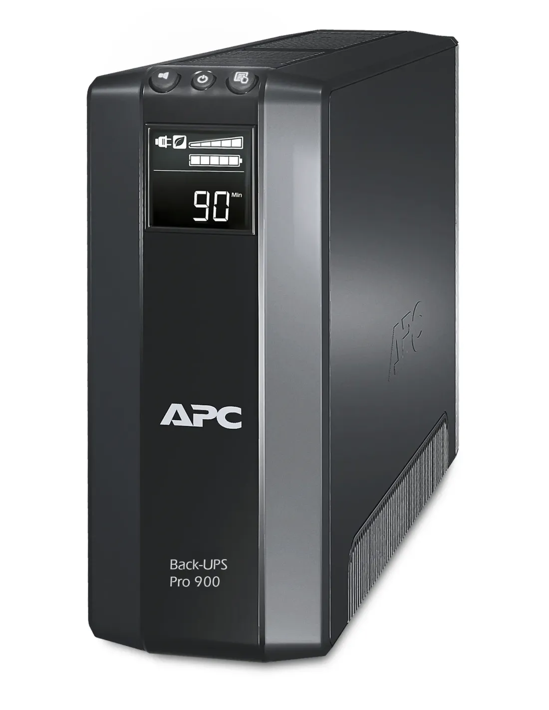 APC Back-UPS Pro. Topología UPS: Línea interactiva, Capacidad de potencia de salida (VA): 0,9 kVA, Potencia de salida: 540 W. Tipo de salida AC: Tipo F, Cantidad de salidas AC: 5 salidas AC. Tecnología de batería: Sealed Lead Acid (VRLA), Capacidad de la batería: 157 VAh, Tiempo típico de respaldo a carga completa: 4,6 min. Color del producto: Negro, Longitud de cable: 1,83 m, Tipo de visualizador: LCD. Ancho: 100 mm, Profundidad: 250 mm, Altura: 382 mm