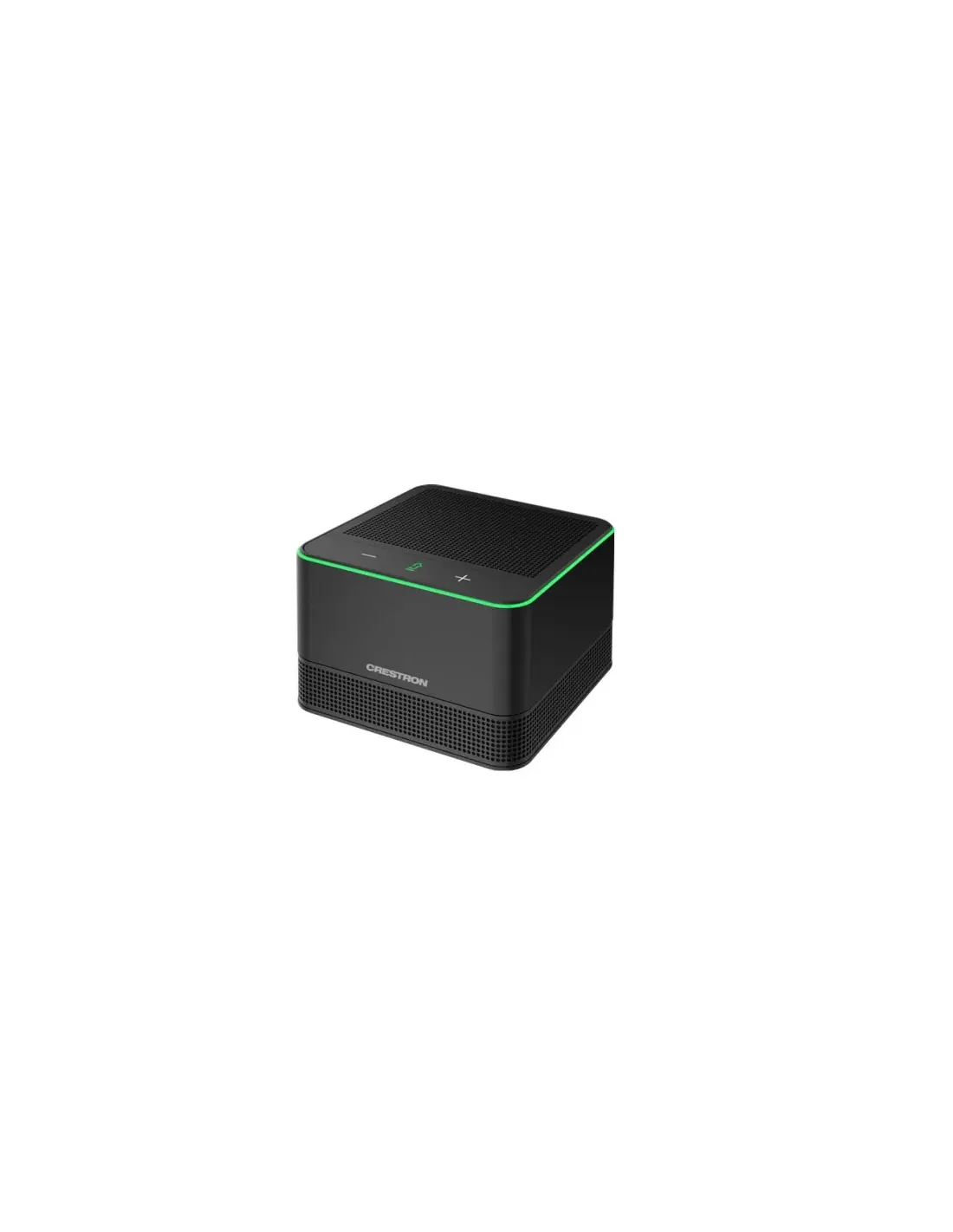 Altavoz y micrófono inalámbricos Crestron Flex Pod, color negro. Un dispositivo inalámbrico de sobremesa para conferencias con un altavoz y cuatro micrófonos, ideal para salas pequeñas y grandes. El módulo se conecta y transfiere audio de forma inalámbrica hacia y desde un concentrador UC-AUDIO-HUB Crestron Flex emparejado