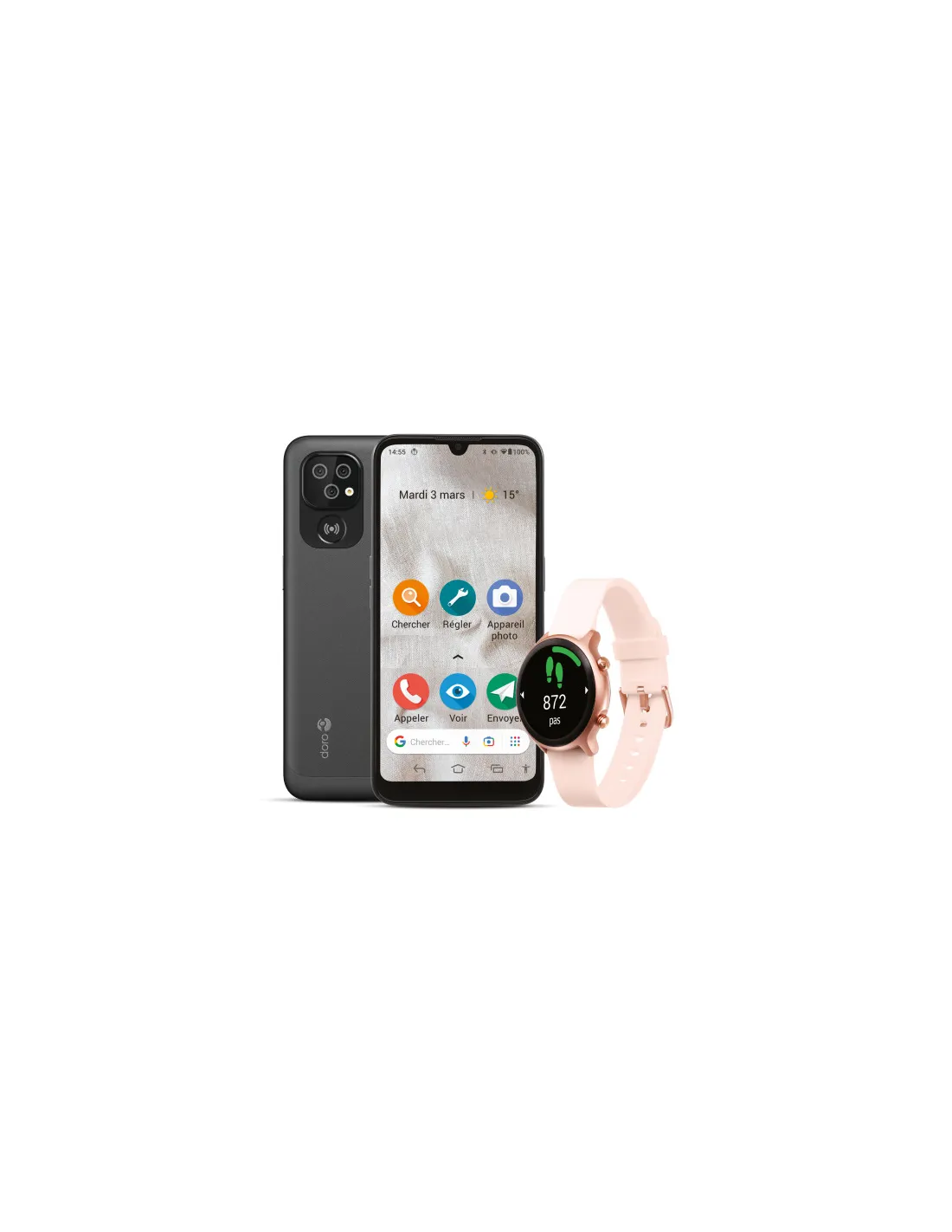 Bundle doro smartphone 8100 + smartwatch graphite pink