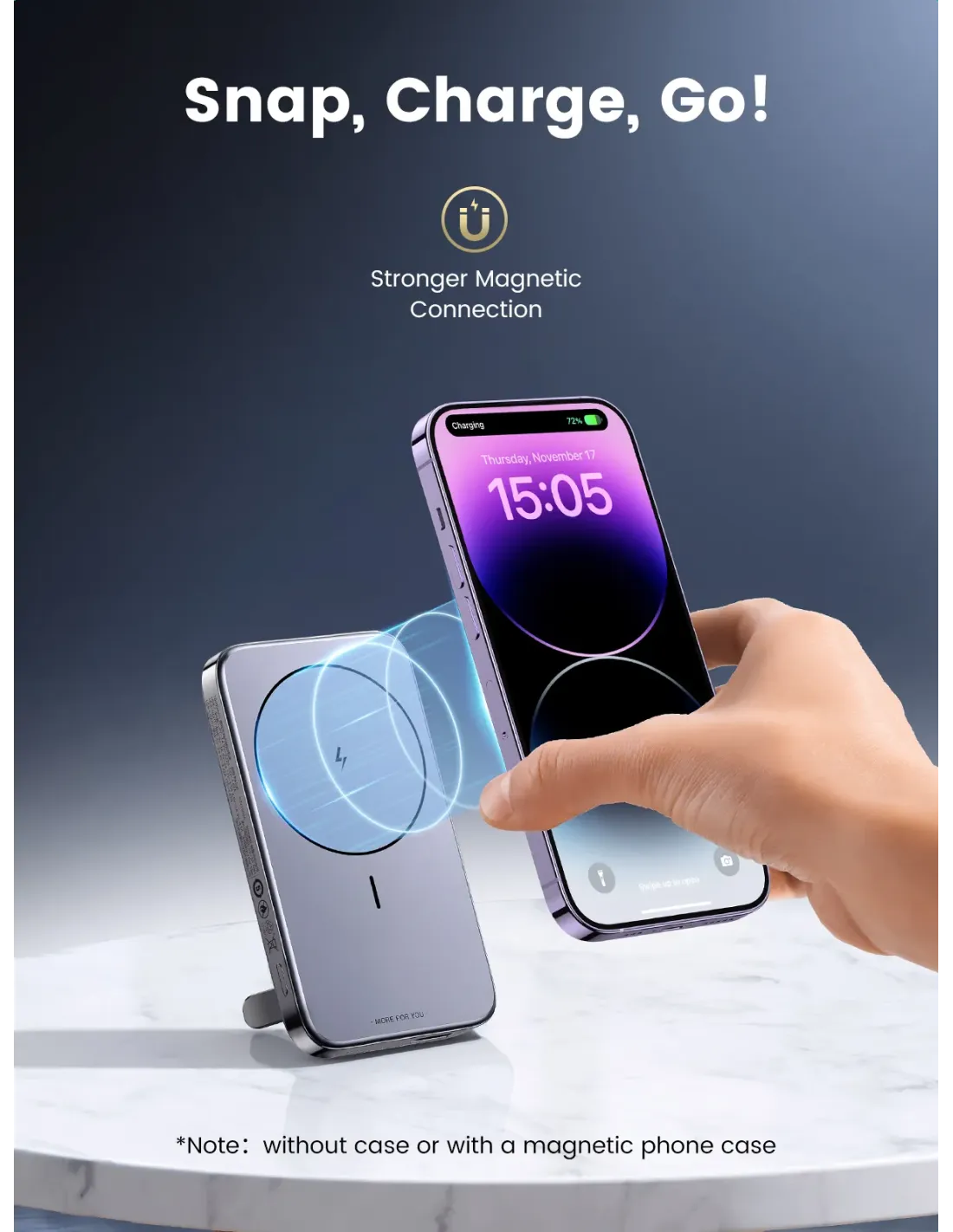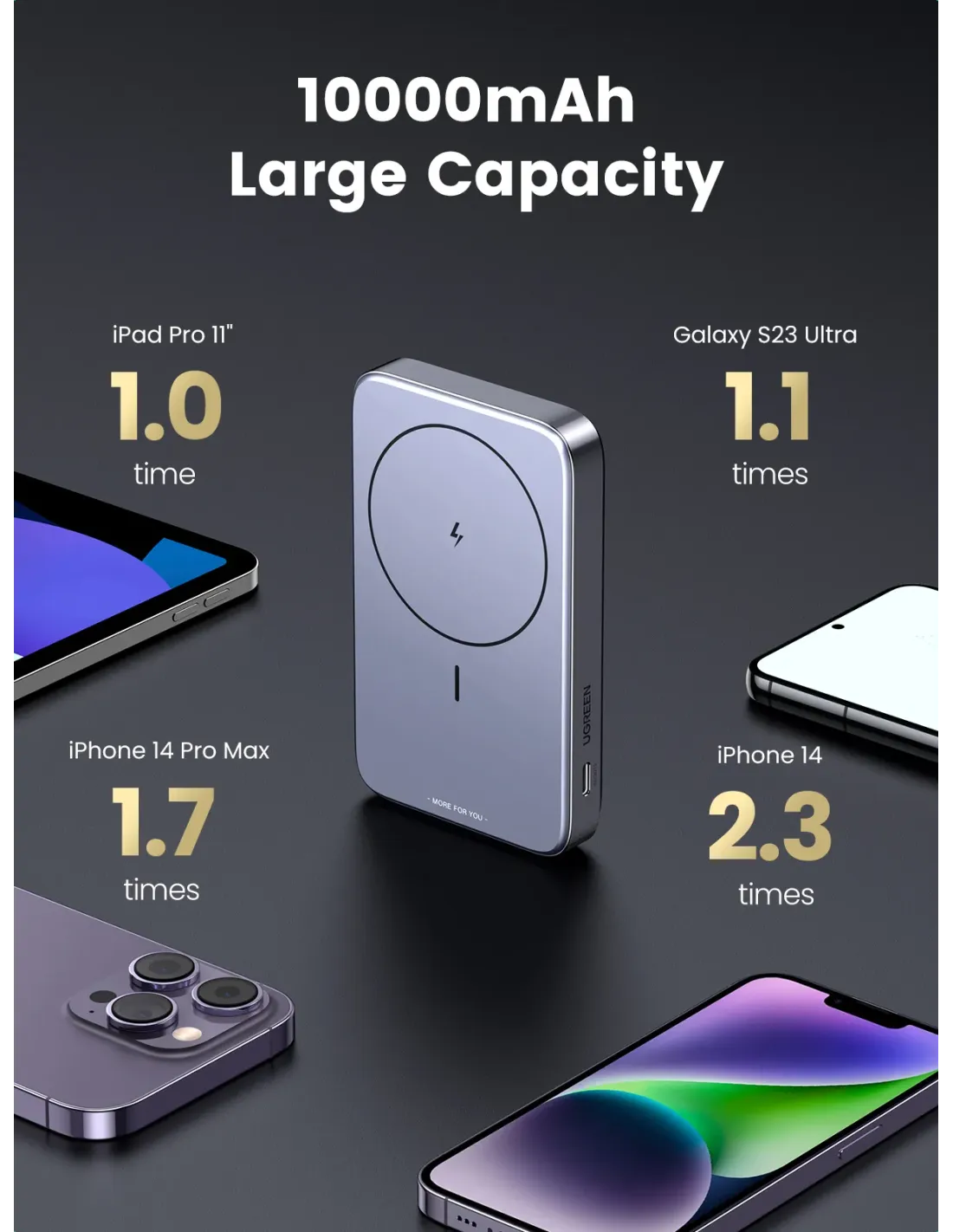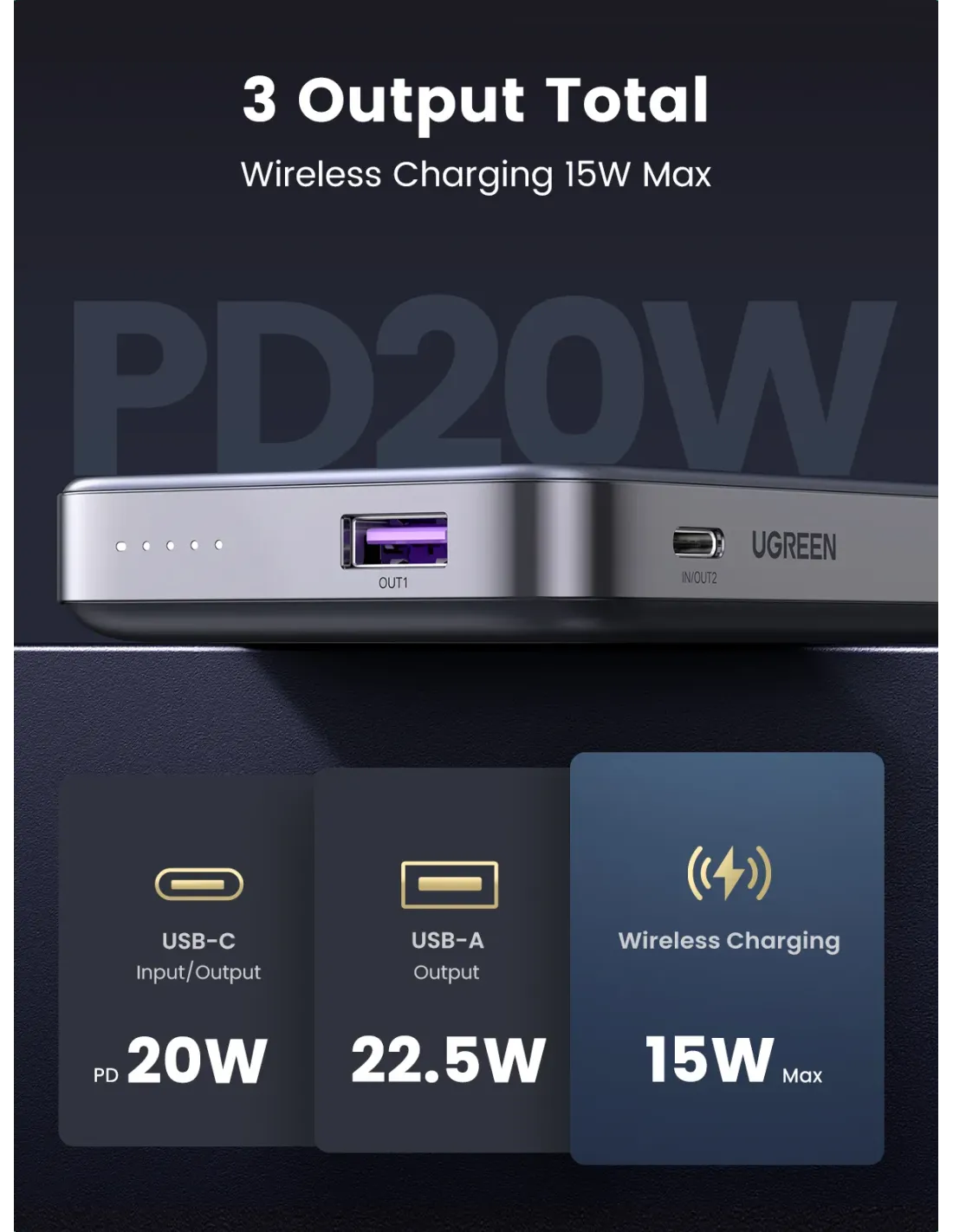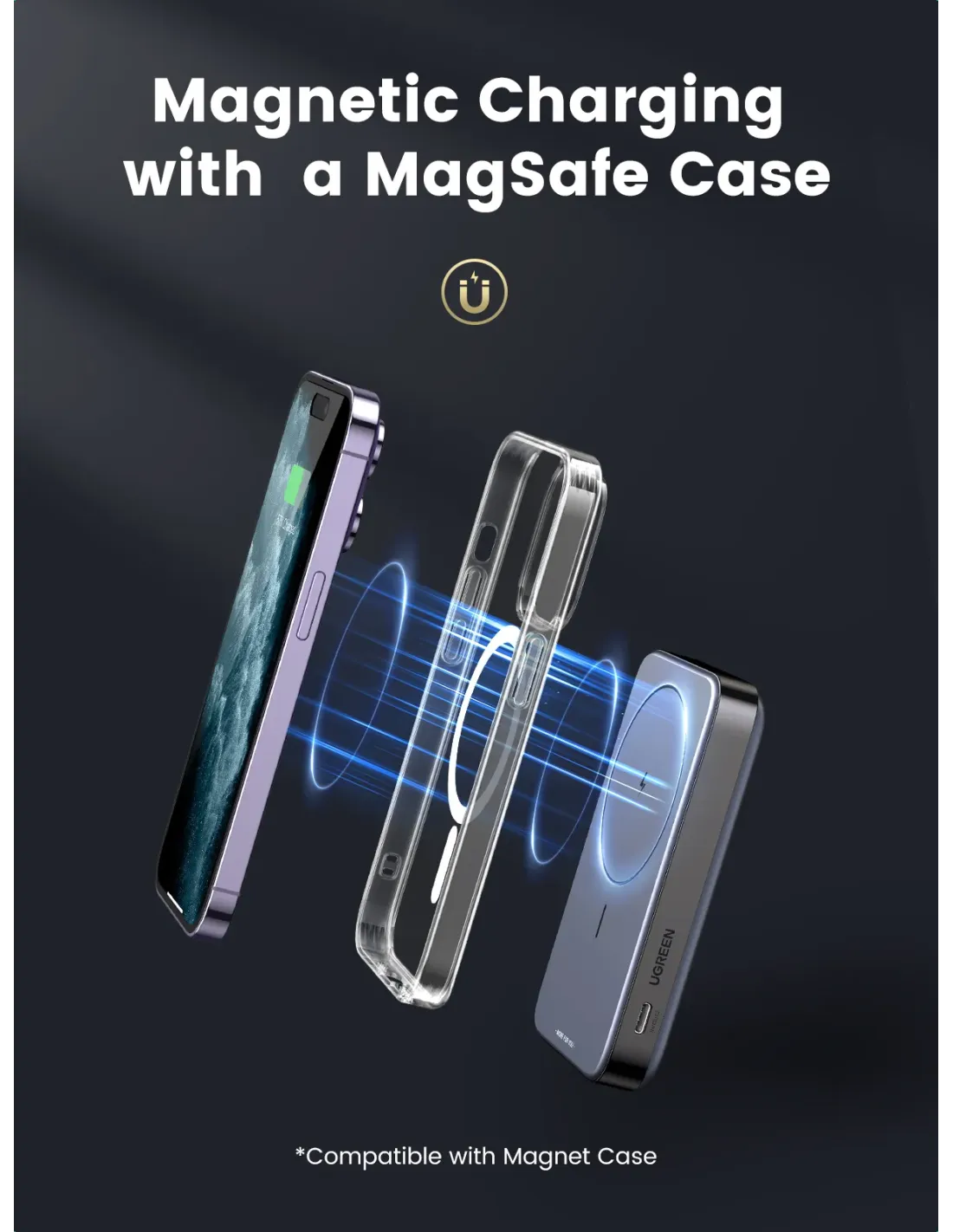UGREEN 10000MAH MINI MAGNETIC WIRELESS 20W POWER BANK WITH HODER