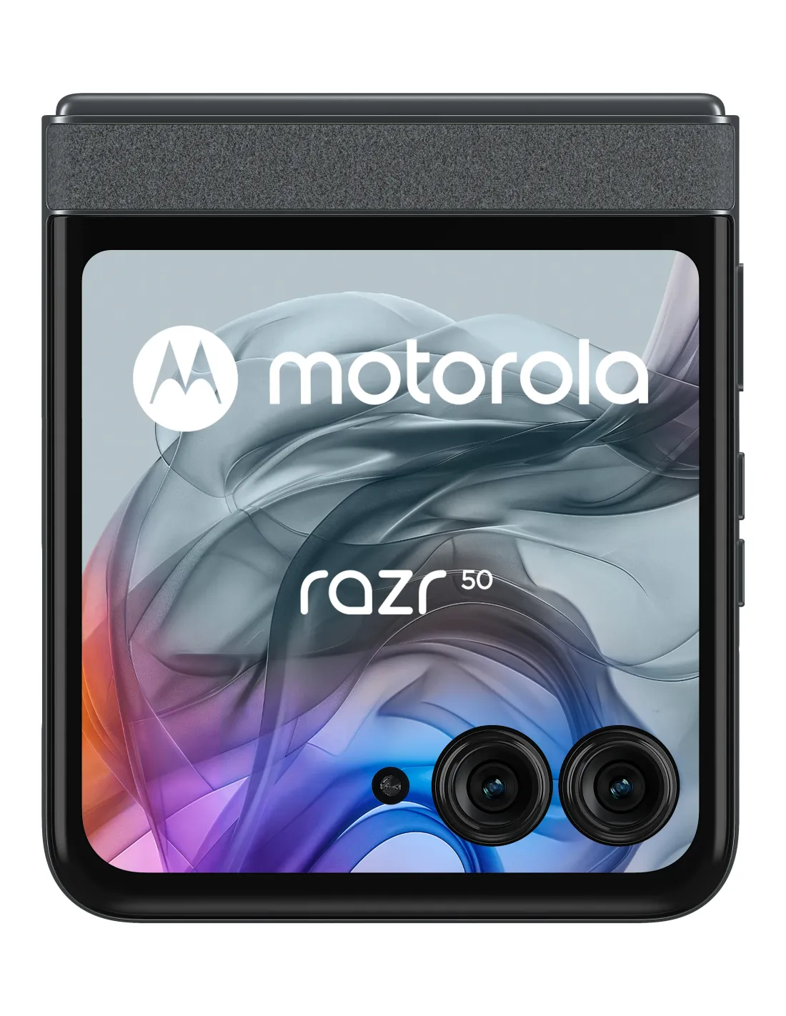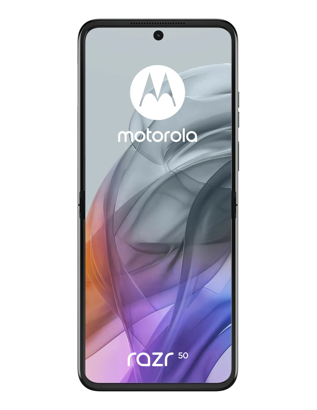 Motorola razr 50. Diagonal de la pantalla: 17,5 cm (6.9"), Resolución de la pantalla: 2640 x 1080 Pixeles. Familia de procesador: MediaTek, Modelo del procesador: 7300X. Capacidad de RAM: 8 GB, Tipo de RAM: LPDDR4X, Capacidad de almacenamiento interno: 256 GB. Resolución de la cámara trasera (numérica): 50 MP, Tipo de cámara trasera: Cámara doble. Capacidad de la tarjeta SIM: SIM doble. Sistema operativo instalado: Android 14. Capacidad de batería: 4200 mAh. Color del producto: Gris. Peso: 188 g