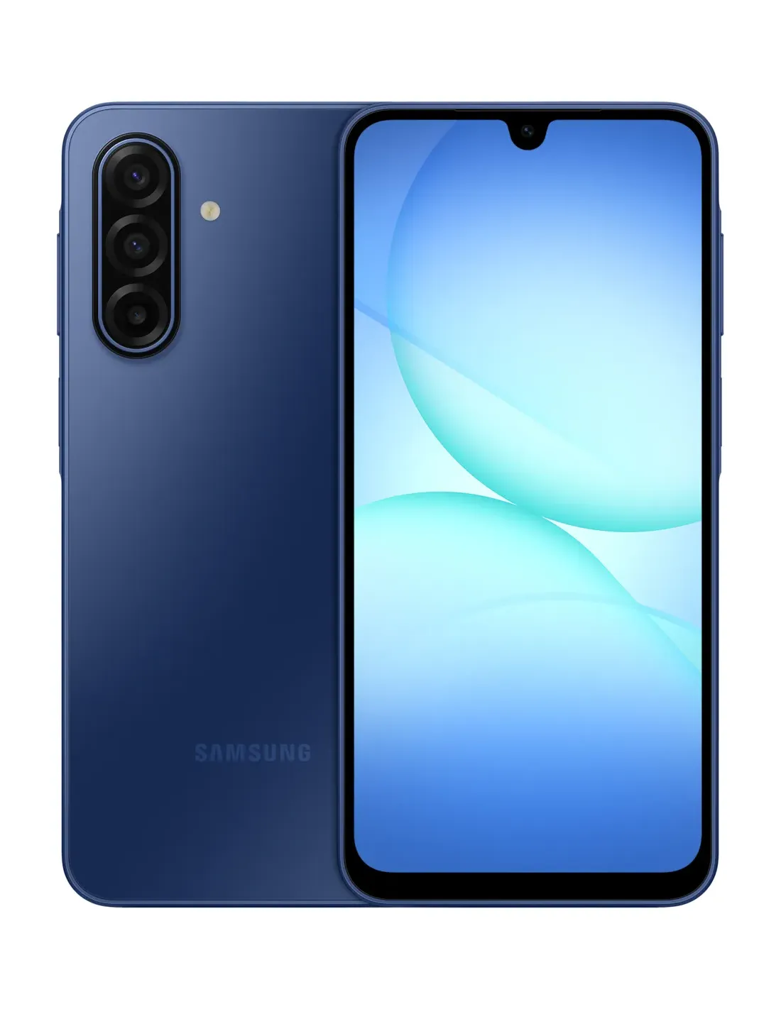 Samsung Galaxy A17 5G. Diagonal de la pantalla: 17 cm (6.7"), Resolución de la pantalla: 1080 x 2340 Pixeles. Familia de procesador: Samsung Exynos. Capacidad de RAM: 8 GB, Capacidad de almacenamiento interno: 256 GB. Resolución de la cámara trasera (numérica): 50 MP, Tipo de cámara trasera: Triple cámara. Capacidad de la tarjeta SIM: Ranura híbrida Dual SIM. Capacidad de batería: 5000 mAh. Color del producto: Azul. Peso: 192 g