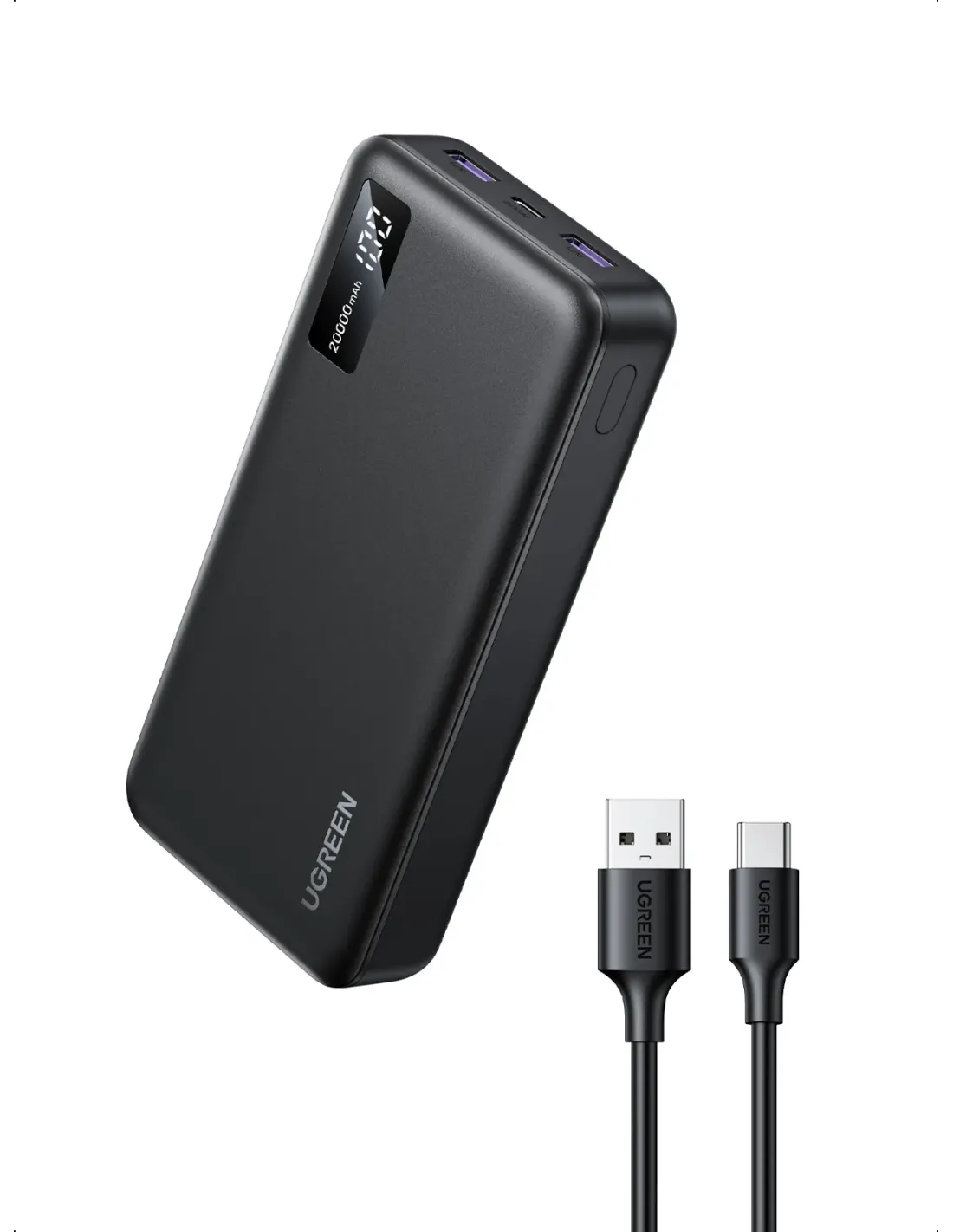 UGREEN POWER BANK 20000MAH 22.5W BATERÍA EXTERNA CON CABLE USB C CARGADOR PORTÁTIL PD 20W CON PANTALLA LED COMPATIBLE