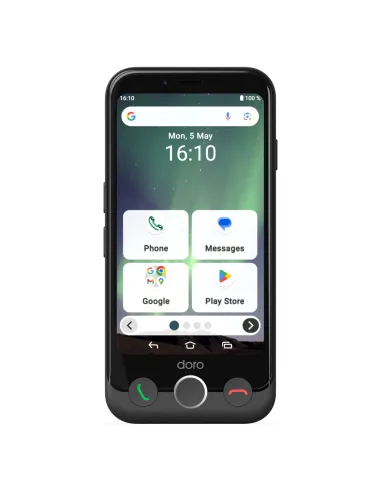 El Doro Aurora A10 es un teléfono inteligente especialmente diseñado para usuarios mayores o personas que buscan un dispositivo fácil de usar, seguro y accesible. Su diseño compacto y ergonómico, junto con una interfaz simplificada y funcionalidades exclusivas como el botón de asistencia, lo convierten en la opción ideal para quienes desean mantenerse conectados con tranquilidad y sin complicaciones.
