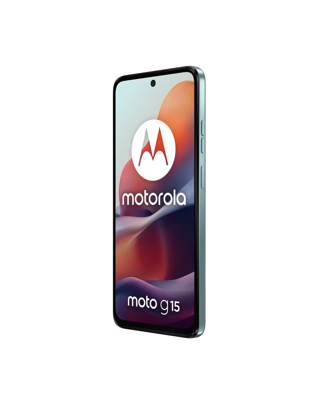 El moto g15 te lleva el cine a tus manos. Ve tus series y películas favoritas cobrar vida en una pantalla Full HD+ supernítida y brillante de 6,72”, incluso a plena luz del día. Déjate envolver por el sonido de unos altavoces estéreo potentes con refuerzo de graves y Dolby Atmos®. Captura las fotos más bonitas y detalladas con el sistema de cámaras de 50 MP(1) y deshazte de todas esas rayas molestas que aparecen con las fuentes de luz artificial. Recarga rápidamente la batería con la carga TurboPower™ (2) y usa el smartphone durante más tiempo gracias a sus 5200 mAh. Disfruta de un aspecto y una sensación de calidad con su diseño en cuero vegano, repelente al agua(3) y con cristal Corning® Gorilla® Glass 3. Y por si fuera poco, deléitate con un rendimiento rápido y muchísimo espacio para tu contenido más divertido. Da luz y color a tus días con el moto g15.