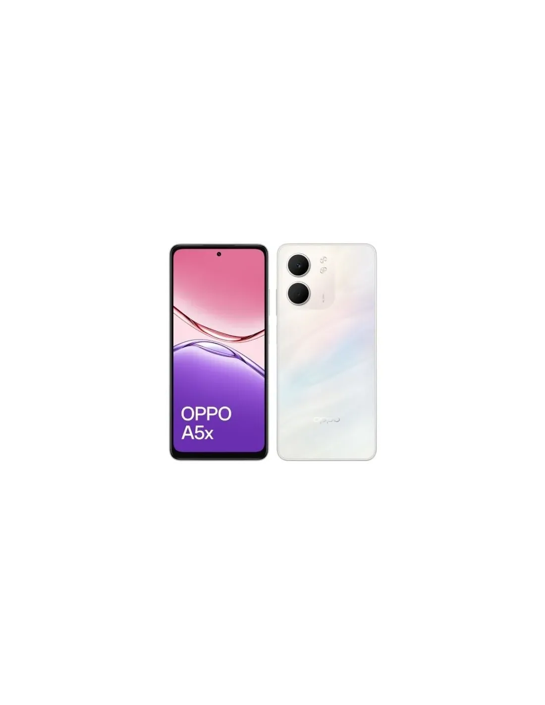 OPPO A5x . Diagonal de la pantalla: 16,9 cm (6.67"), Resolución de la pantalla: 720 x 1604 Pixeles. Familia de procesador: Qualcomm Snapdragon, Modelo del procesador: 6s Gen 1. Capacidad de RAM: 4 GB, Tipo de RAM: LPDDR4X, Capacidad de almacenamiento interno: 128 GB. Resolución de la cámara trasera (numérica): 32 MP, Tipo de cámara trasera: Cámara única. Capacidad de la tarjeta SIM: SIM doble. Capacidad de batería: 6000 mAh. Color del producto: Blanco. Peso: 193 g