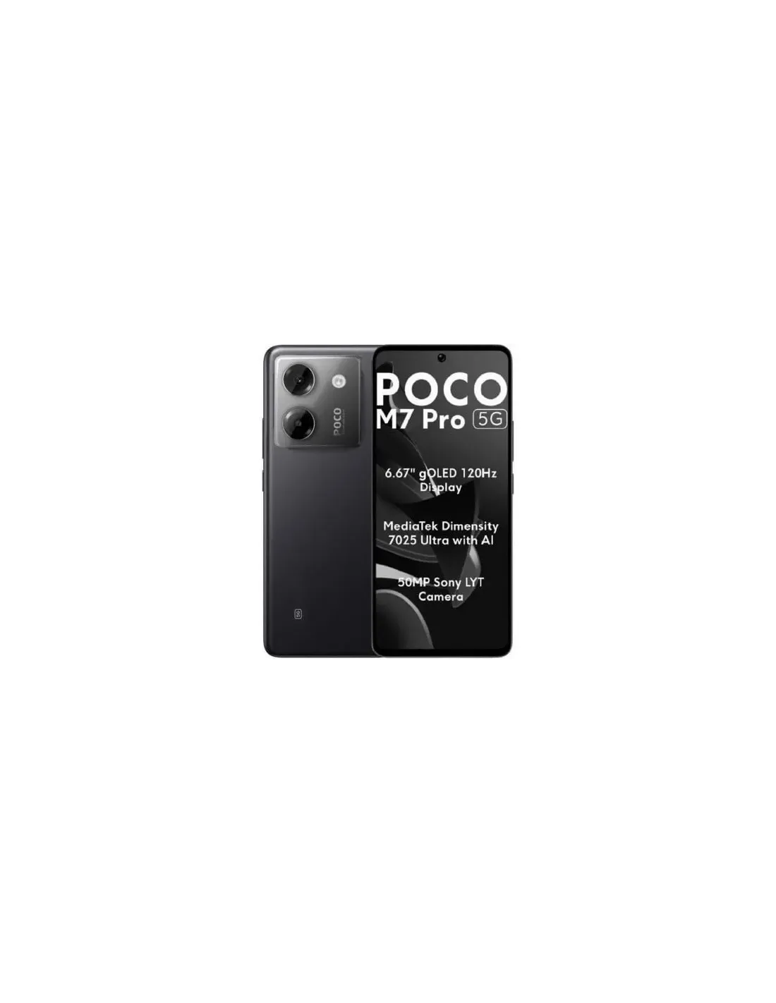 Rendimiento totalmente mejoradoEquipado con un Dimensity 7025-Ultra, el procesador 5G de 6 nm ofrece una robusta fiabilidad para hacer tareas en paralelo sin esfuerzo y jugar sin problemas.Velocidad de CPU de hasta 2,5 GHz 8 núcleosExperiencia de 5G mejoradaLa red de alta velocidad 5G mejorada mejora la experiencia de entretenimiento con transmisión instantánea de vídeo y música.Extensión de memoria 3.0Hasta 24 GB de RAM, incluidos 12 GB de memoria ampliada, para poder ejecutar más de 42 aplicaciones simultáneamente. Maneja sin esfuerzo tareas complejas, inicia aplicaciones más rápido y experimenta un rendimiento multitarea más fluido.Más vida útil gracias a una mayor capacidad de la bateríaBatería de larga duración para un entretenimiento sin finCon una batería de gran capacidad de 5110 mAh y gestión inteligente de la energía, no tendrás que preocuparte por la duración de la batería incluso con un uso intensivoBatería grande y duraderaSu batería de ciclo largo certificada por TÜV SÜD conserva más del 80 % de su vida útil incluso después de 1600 ciclos de carga, lo que garantiza la fiabilidad a largo plazo.Carga turbo ultrarrápida de 45 WSe carga hasta el 60 % o más en solo 30 minutos. La carga ultrarrápida te ahorra tiempo y la preocupación de quedarte sin batería, para que uses tu smartphone con más eficiencia.Salud de la batería 4.0Detecta automáticamente el consumo de energía y ajusta la estrategia de carga en consecuencia para prolongar la vida útil de la batería.Carga inteligente 1.0Aprende de forma adaptativa tus hábitos de carga e identifica inteligentemente los adaptadores para ajustar las estrategias de carga y extender la vida útil de la batería.Imágenes con colores vivosPantalla AMOLED de 6,67"EL POCO M7 Pro 5G cuenta con una pantalla AMOLED de 6,67 pulgadas con una frecuencia de actualización de 120 Hz y 394 ppp, colores vivos e imágenes nítidas. Su brillo máximo también es ultraalto, lo que garantiza una visualización clara y cómoda incluso en exteriores.Protección ocular profesionalLa pantalla del POCO M7 Pro 5G cuenta con tres certificaciones de TÜV Rheinland y la certificación Eye Care Display de SGS.La pantalla ajusta dinámicamente la temperatura del color y el brillo según la hora actual y la aplicación (predeterminada, lectura, audio y vídeo) para satisfacer las necesidades de protección ocular del usuario en diferentes situaciones.Reproducción auténtica del colorLa pantalla ofrece una reproducción rica, natural y precisa de los colores. Disfruta de unos gráficos impresionantes mientras disfrutas de las películas más taquilleras con CGI.Wet TouchLa tecnología Wet Touch mejorada afina la precisión táctil en todo tipo de condiciones, lo que permite un control preciso incluso con agua, manchas de grasa o espuma en la pantalla.Mejoras integrales de las capacidades fotográficasIMX882 de SonyLa cámara principal está equipada con un sensor Sony IMX882 de 50 MP. Su apertura ultragrande de f/1,5 deja entrar más luz para conseguir un efecto bokeh más extraordinario y que puedas hacer retratos o fotos impresionantes incluso de noche.OIS y zoom sin pérdidasZoom óptico en el sensor 2XUn nuevo zoom óptico de 2 aumentos y un algoritmo de IA se combinan para ampliar el campo de visión y ofrecer detalles precisos con el zoom óptico y una claridad excepcional en cada encuadre.Tecnología de estabilización dual OIS y EISLa cámara principal del POCO M7 Pro 5G cuenta con estabilización de imagen óptica y electrónica para mejorar la estabilidad. Así tendrás mejores resultados al hacer fotos o vídeos y tus imágenes serán más claras y nítidas.Motor de imágenes de POCOMaximiza las capacidades de imagen de tu POCO M7 Pro 5G con el motor de imágenes de POCO.Modo nocturno Ultra-Sense de dominio RAWIncluye un algoritmo de modo nocturno Ultra-Sense de dominio RAW para captar más detalles tanto en escenas nocturnas como a contraluz, con una profundidad asombrosa de luces y sombras.Fotos dinámicas*Captura momentos dinámicos antes de pulsar el obturador para disponer de más opciones en la posproducción. Tres opciones de exportación: foto, vídeo o GIF.Funciones AI en la galeríaDa rienda suelta a tu creatividad con una amplia gama de funciones gratuitas con AI entre y crea obras maestras en vídeo con las fotos de tu galería.Cámara frontalEl objetivo frontal gran angular de 20 MP cuenta con un ajuste automático del zoom de 0,8 aumentos para selfies de grupo, lo que garantiza que todos estén perfectamente encuadrados y destaquen con claridad.Diseño clásico y a la vez modernoTres colores entre los que elegirDiseño clásico POCOLas esquinas redondeadas suaves, los colores sólidos y la textura similar a la roca crean una sensación táctil sofisticada a la vez que rematan su diseño elegante y lineal.Se adapta a la perfección a tu manoLa tapa trasera de la batería presenta sutiles curvas en los cuatro lados. Las curvas suaves de los dos costados del marco ayudan a que tenga un aspecto menos voluminoso al tiempo que contribuyen a que el agarre sea más cómodo.Diseño de bisel sin ranuras entre las piezas ni bordes de plásticoAl no tener bordes de plástico alrededor del bisel, el dispositivo es más elegante que nunca y sus biseles más estrechos. Así su diseño es al tiempo sofisticado y minimalista.Experiencia mejoradaResistencia al polvo y al agua IP64Protección eficaz contra agua, polvo u otras situaciones inesperadas.Altavoces estéreo duales DolbyAumento de volumen del 300 % con proyección de sonido de alcance ultralargo, para que los usuarios tengan una experiencia multimedia envolvente incluso en los entornos exteriores más ruidosos.Más característicasEl dispositivo está equipado con un asistente AI integrado y otras funciones inteligentes para mantener a los usuarios conectados en múltiples situaciones y facilitar una experiencia de uso cómoda y eficiente.