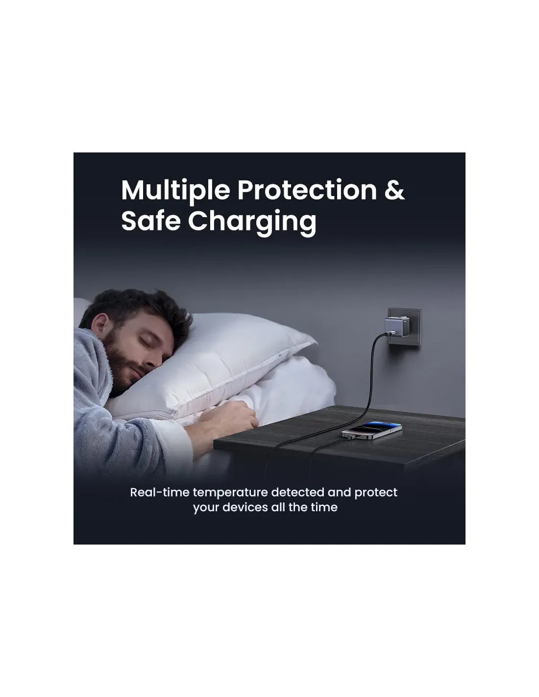 .Potente carga de 30 W: carga dispositivos hasta un 360 % más rápido con entrega de potencia de 30 W..Diseño compacto: más pequeño que los cargadores típicos de 30 W perfecto para viajes y uso en movimiento..Tecnología Thermal Guard: el monitoreo de temperatura en tiempo real evita el sobrecalentamiento..Amplia compatibilidad: admite múltiples protocolos de carga rápida, lo que lo hace versátil para varios dispositivos..Carga eficiente: utiliza tecnología GaNInfinity para un rendimiento de primer nivel en un formato compacto..Características especiales: Ligero, portátil y de carga rápida..Amplia compatibilidad: admite múltiples protocolos de carga rápida, compatible con las series iPhone 8-15, Galaxy S24/S23/S22, iPad Mini/Pro/Air y Google Pixel.
