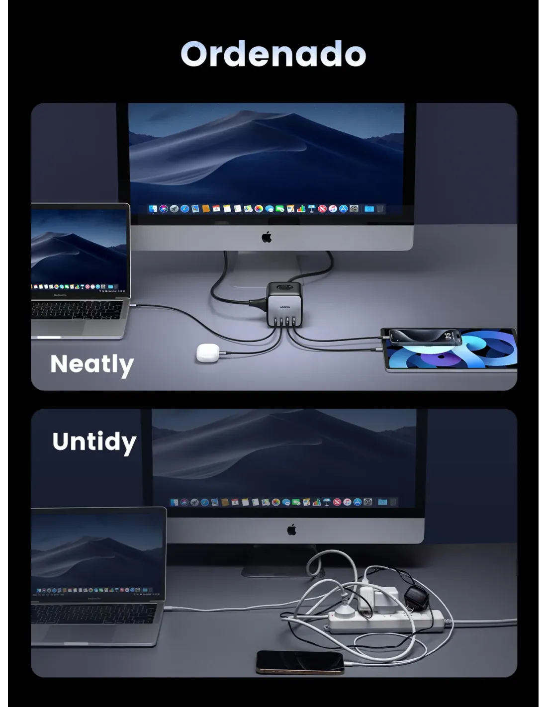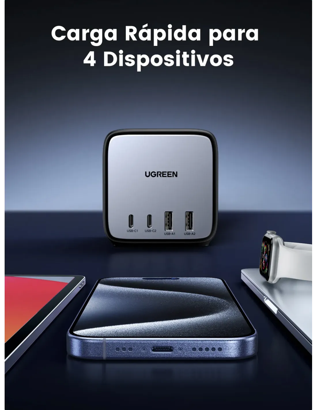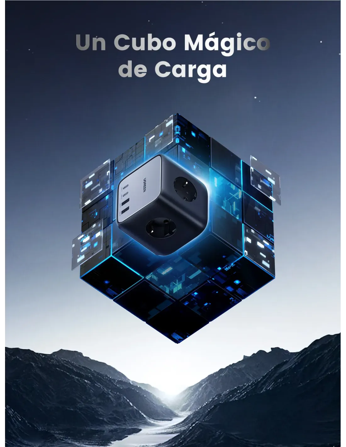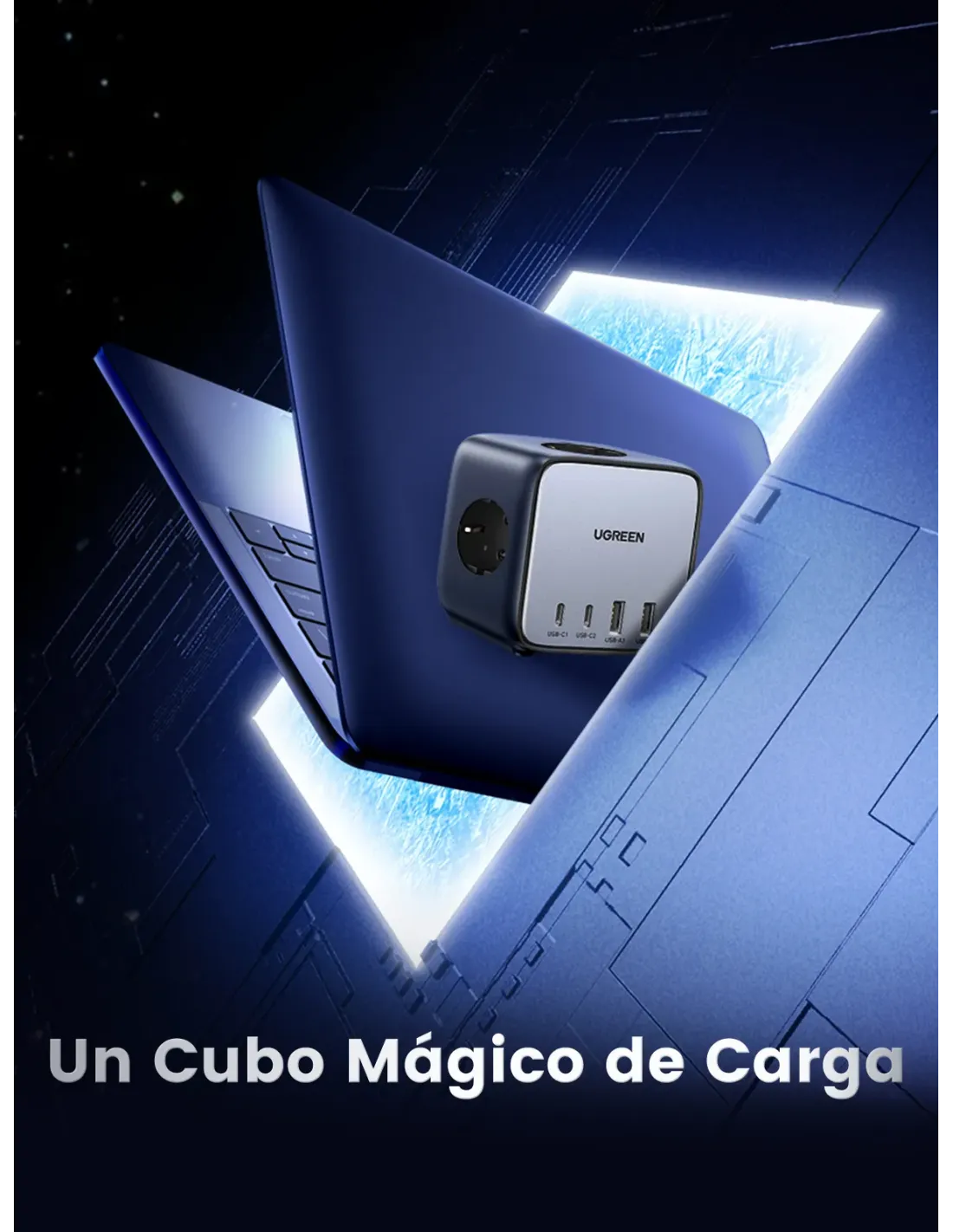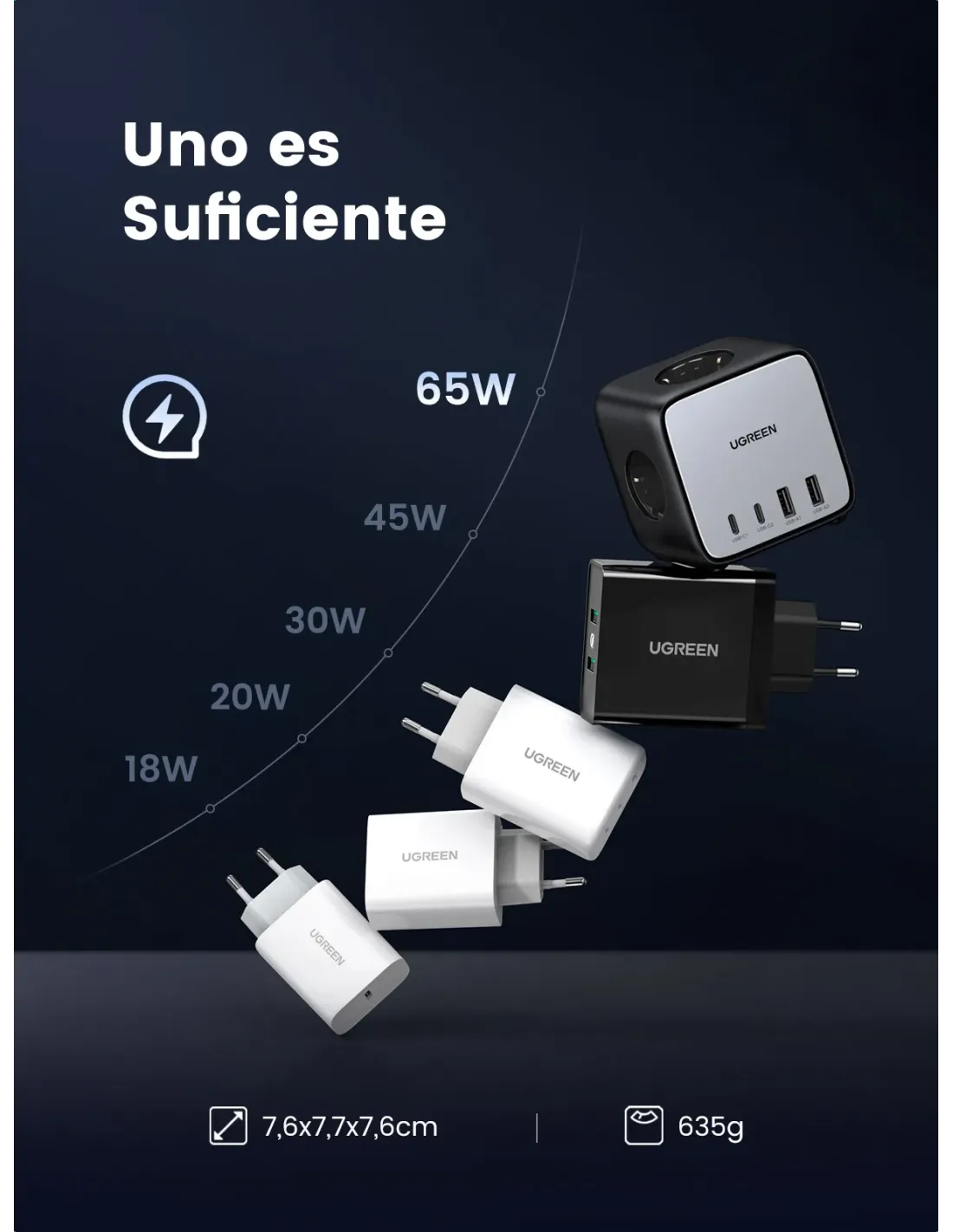 UGREEN ESTACIÓN DE CARGA NEXODE DIGINEST USB C GAN 65 W. 7 EN 1: 3 SALIDAS CA. 2USB C. 2USB A, CABLE 1.8M