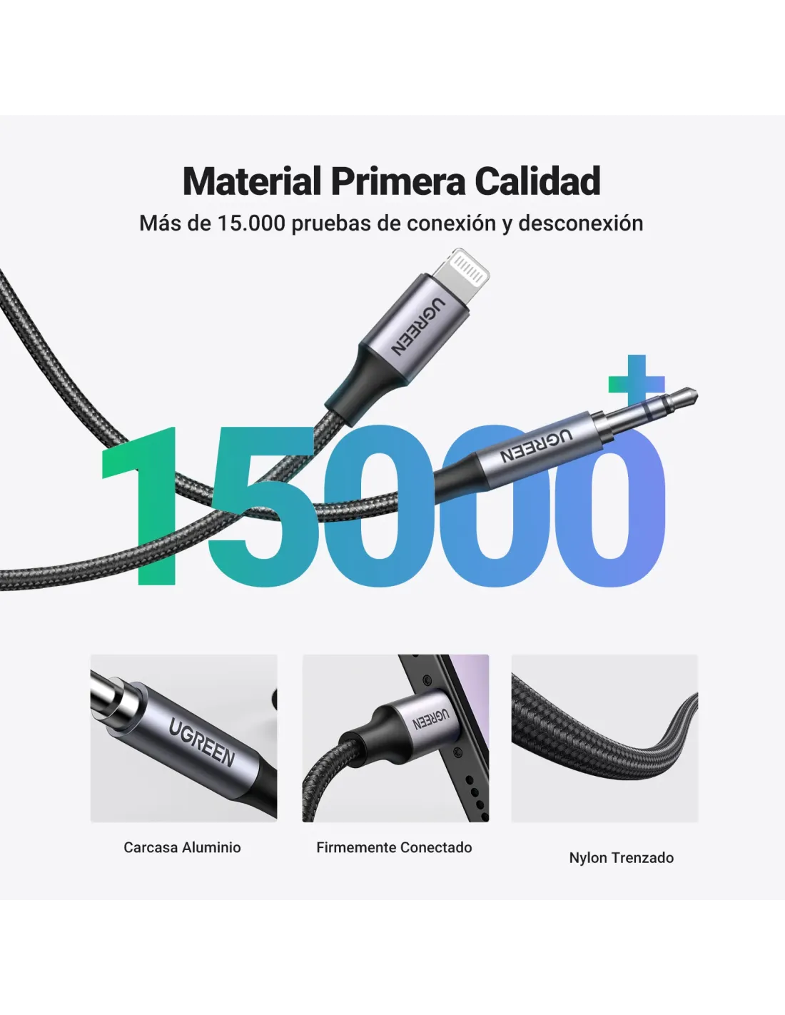 (D)UGREEN CABLE LIGHTNING 1M NEGRO COMPATIBLE IOS 10.3.1 Y POSTERIORES