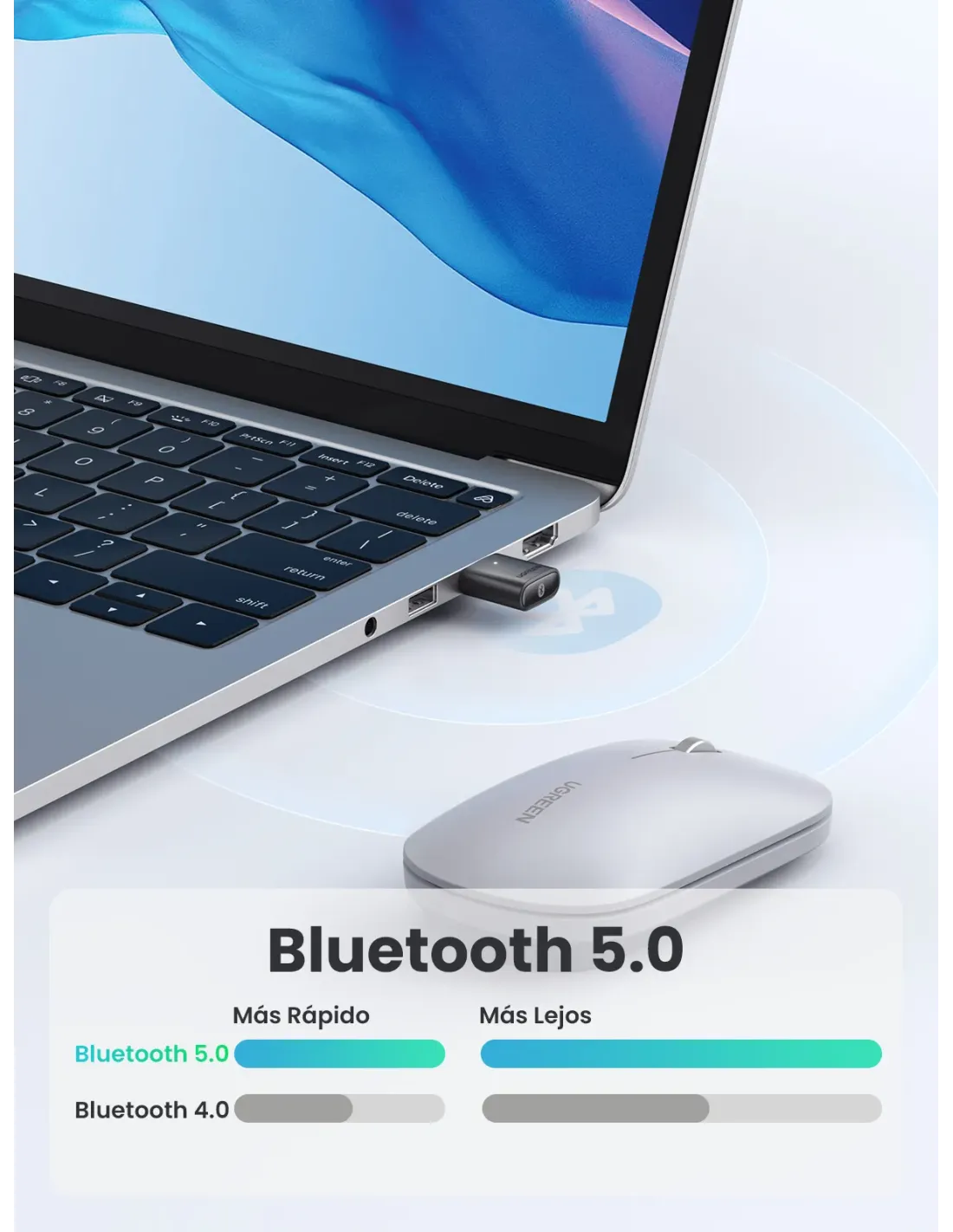UGREEN USB ADAPTADOR BLUETOOTH 5.0 SOPORTA 5 DISPOSITIVOS