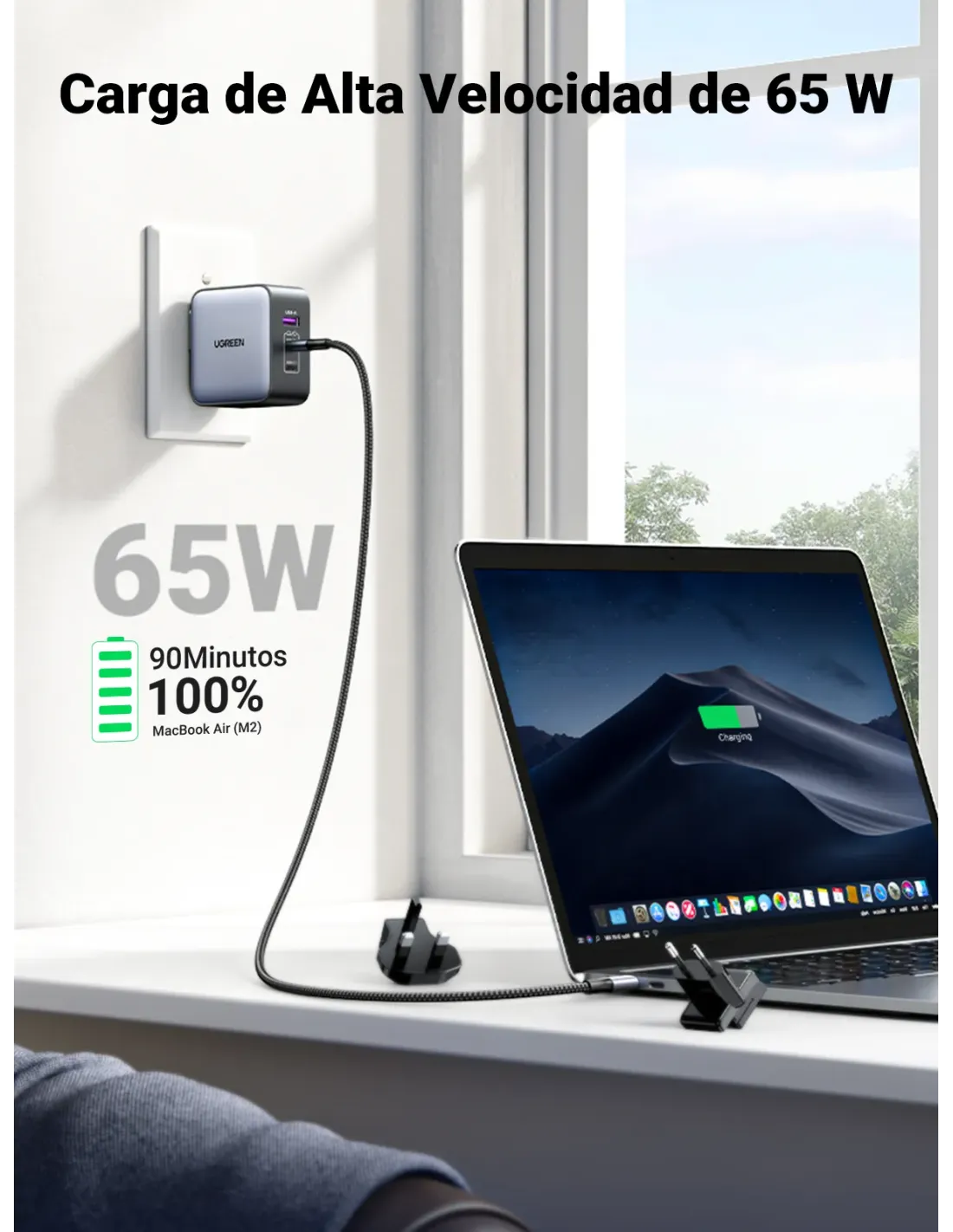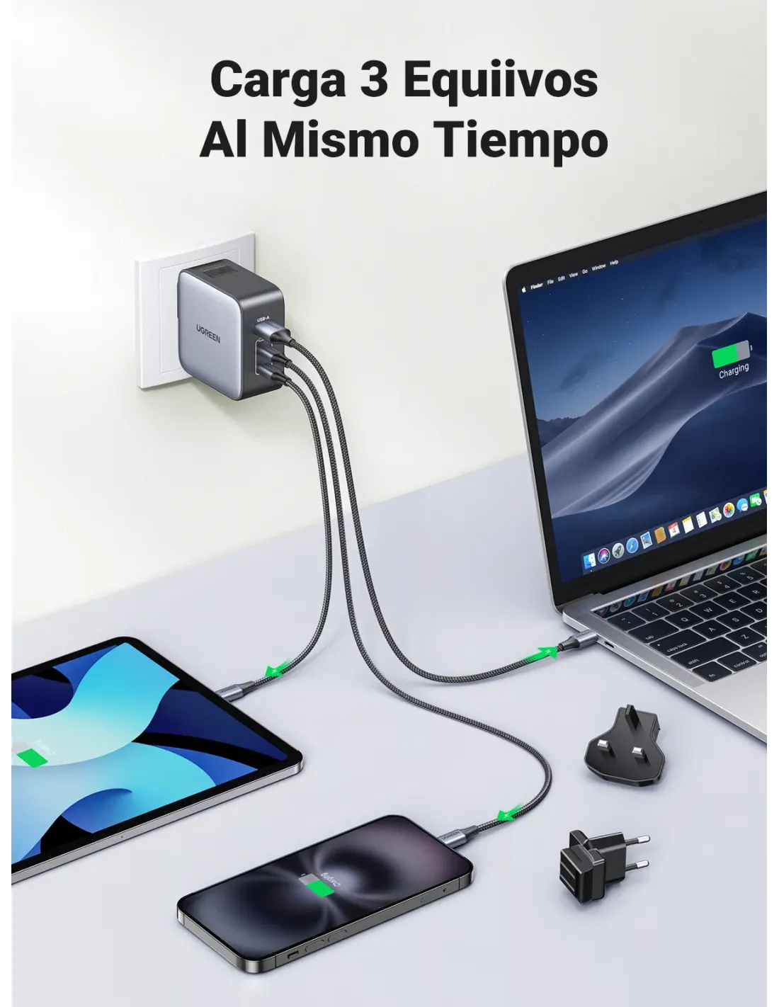 UGREEN CARGADOR RAPIDO DE VIAJE 65W 1X USBA+2XUSBC 65W METAL