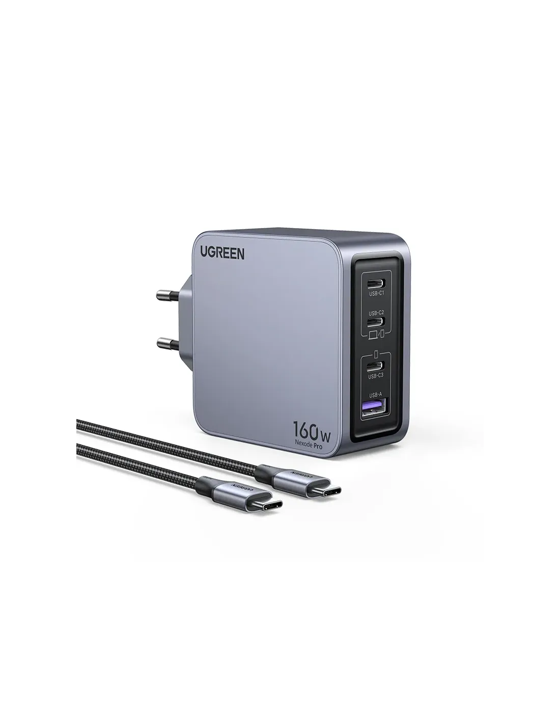 Ugreen Nexode Pro 160W GaN Charger with USB-C Cable. Tipo de cargador: Interior, Alimentación: Corriente alterna, Compatibilidad del cargador: Universal, Carga rápida, Funciones de protección de poder: Sobreintensidad, Sobrevoltaje, Sobrecalentamiento. Color del producto: Negro, Gris