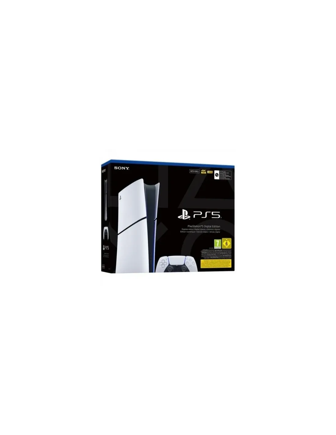 Características de la Consola PS5 Sony PlayStation 5 Digital Slim 825GB Chasis ELa PlayStation®5 Digital Slim llega con un diseño renovado, más compacto y ligero, sin renunciar a la potencia que define a la nueva generación. Esta versión prescinde del lector de discos para ofrecerte una experiencia 100% digital, ideal para quienes prefieren descargar y jugar directamente desde la nube o desde la tienda online. Con su almacenamiento SSD de alta velocidad y compatibilidad con gráficos en 4K, esta consola está diseñada para ofrecer juegos inmersivos, fluidos y realistas.Diseño Slim y almacenamiento ultrarrápidoLa nueva edición Slim de PS5® reduce el tamaño de la consola sin sacrificar potencia. Su SSD de 825 GB permite cargar juegos en cuestión de segundos, para que pases menos tiempo esperando y más jugando. Además, su arquitectura interna permite aprovechar al máximo los tiempos de carga y procesamiento.Diseño compacto y elegante, chasis EAlmacenamiento SSD de 825 GB integrado*Velocidades de carga casi instantáneasExperiencia gráfica de nueva generaciónGracias al trazado de rayos y la compatibilidad con 4K HDR, la PS5® ofrece mundos mucho más realistas, con sombras dinámicas y reflejos naturales. Además, soporta hasta 120 fps con salida de 120 Hz para que los juegos compatibles se vean más suaves y fluidos, especialmente en televisores de alta gama.Resolución hasta 4K en juegos compatiblesTrazado de rayos para efectos lumínicos avanzadosSoporte para 120 Hz y hasta 120 fpsAudio inmersivo y sensaciones realistasLa tecnología 3D Tempest AudioTech transforma tu entorno sonoro para una experiencia completamente envolvente, ya sea con auriculares o con los altavoces del televisor. Además, el mando DualSense? ofrece retroalimentación háptica y gatillos adaptativos, que replican sensaciones físicas dentro del juego.Audio 3D con Tempest para sonido espacialRetroalimentación háptica en juegos compatiblesGatillos adaptativos con resistencia dinámicaContenido preinstalado y retrocompatibilidadIncluye ASTRO'S Playroom, un juego que demuestra las capacidades del DualSense®. Además, la consola es compatible con más de 8500 juegos de PS4®, muchos de ellos mejorados gracias a la función Game Boost.Juego ASTRO'S Playroom incluidoCompatibilidad con juegos de PS4®Game Boost para mejoras de rendimientoConectividad y compatibilidadLa PS5 Digital Slim es compatible con todos los accesorios PS5 del modelo CFI-2000, incluyendo cubiertas y unidades de disco (se venden por separado). Ideal para quienes buscan una experiencia digital completa sin necesidad de formato físico.Compatible con accesorios CFI-2000Soporte vertical se vende por separadoSe requiere cuenta para PlayStation NetworkOtras especificacionesModelo: CFI-2100 SlimEdición Digital (sin lector de discos)Parte de la SSD reservada para el sistemaRequiere conexión a internet para actualizaciones y serviciosAudio 3D disponible mediante auriculares USB o estéreo