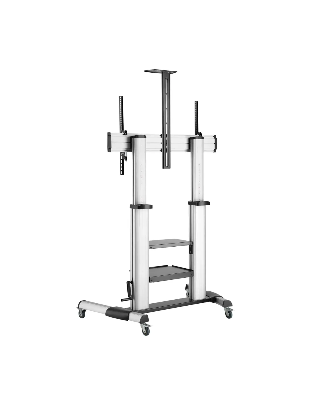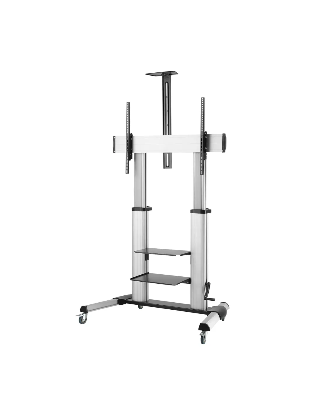 AISENS® – Soporte de suelo pro con rueda y manivela, bandejas para DVD y soporte de cámara para monitor/TV de 60”-100”