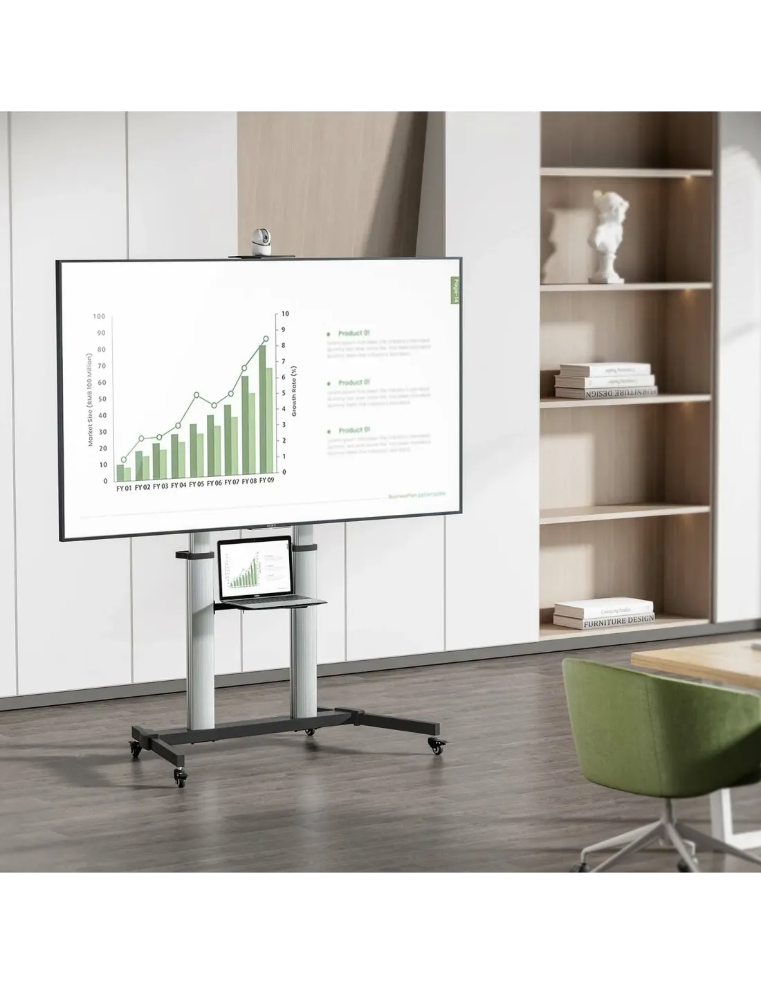 Soporte de suelo PRO con ruedas, bandeja para DVD y soporte de cámara para Monitor/TV 100Kg de 60-100, Negro-Plata