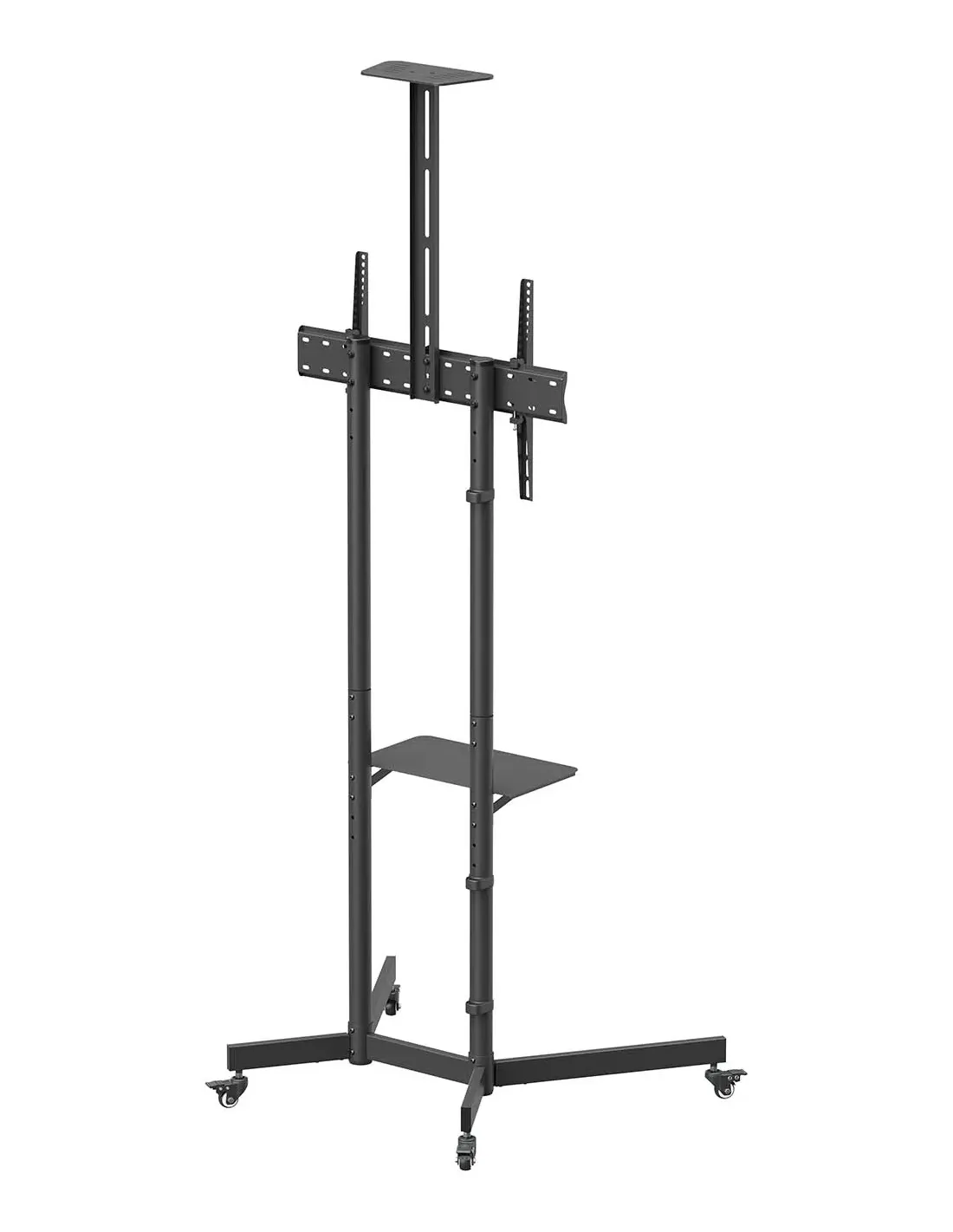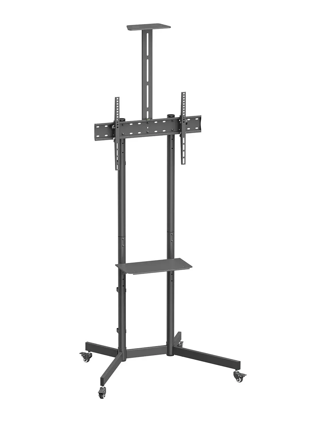 Soporte De Suelo Eco Con Rueda, Bandeja Para DVD Y Soporte De Cámara Para Monitor/TV 45kg De 37-70, Negro