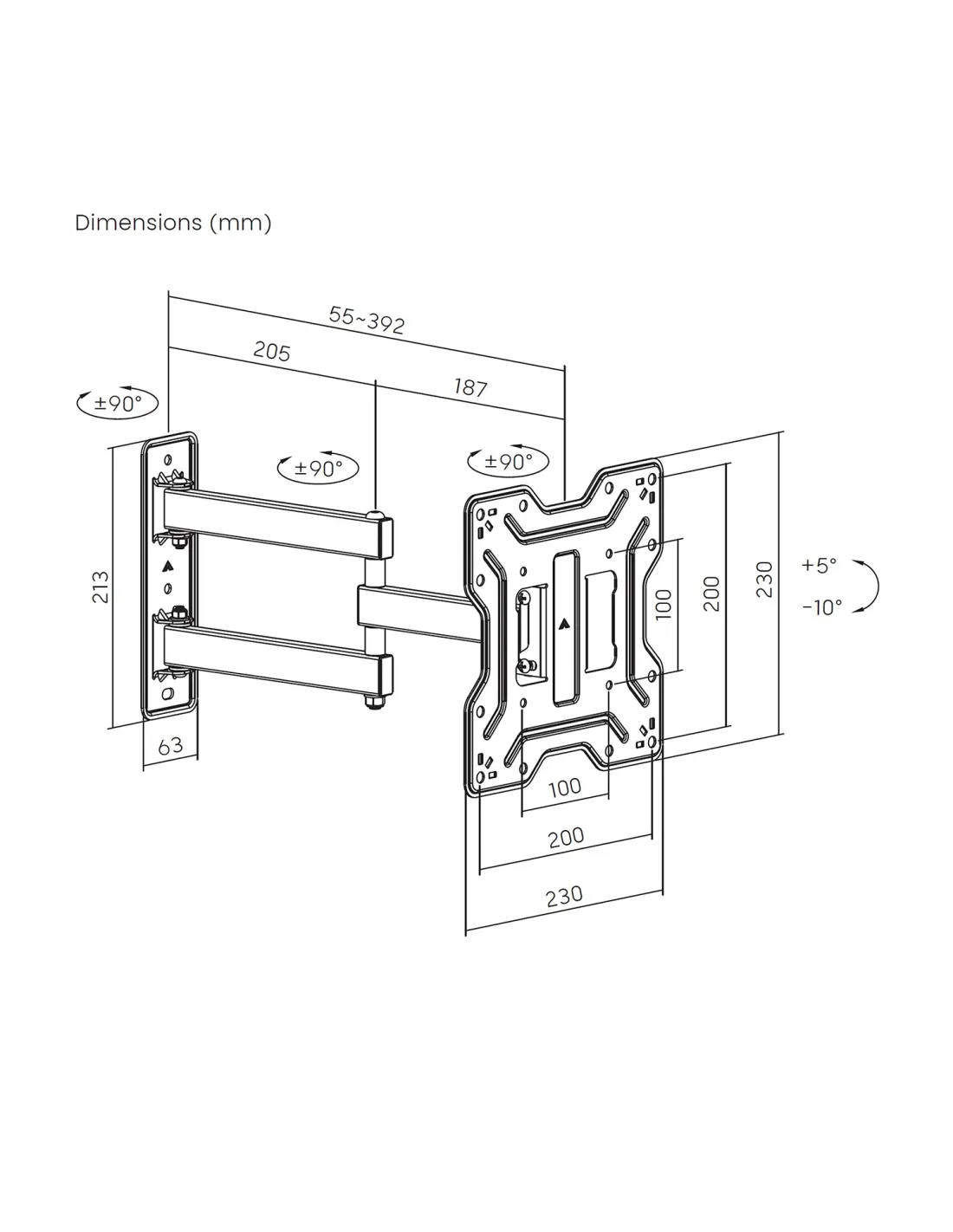 AISENS Soporte Eco Giratorio, Inclinable Para Monitor/TV 30kg (3 Pivotes) De 23"-43", Negro. Capacidad máxima de peso: 30 kg, Tamaño mínimo de pantalla: 58,4 cm (23"), Tamaño máximo de pantalla: 109,2 cm (43"), Compatibilidad con interfaz de montaje (min): 100 x 100 mm, Compatibilidad con interfaz de montaje (max): 200 x 200 mm. Ángulo de inclinación: -10 - 5°, Ángulo de giro (alcance): -90 - 90°, Distancia a la pared (min): 5,5 cm, Distancia a la pared (max): 39,2 cm. Color del producto: Negro