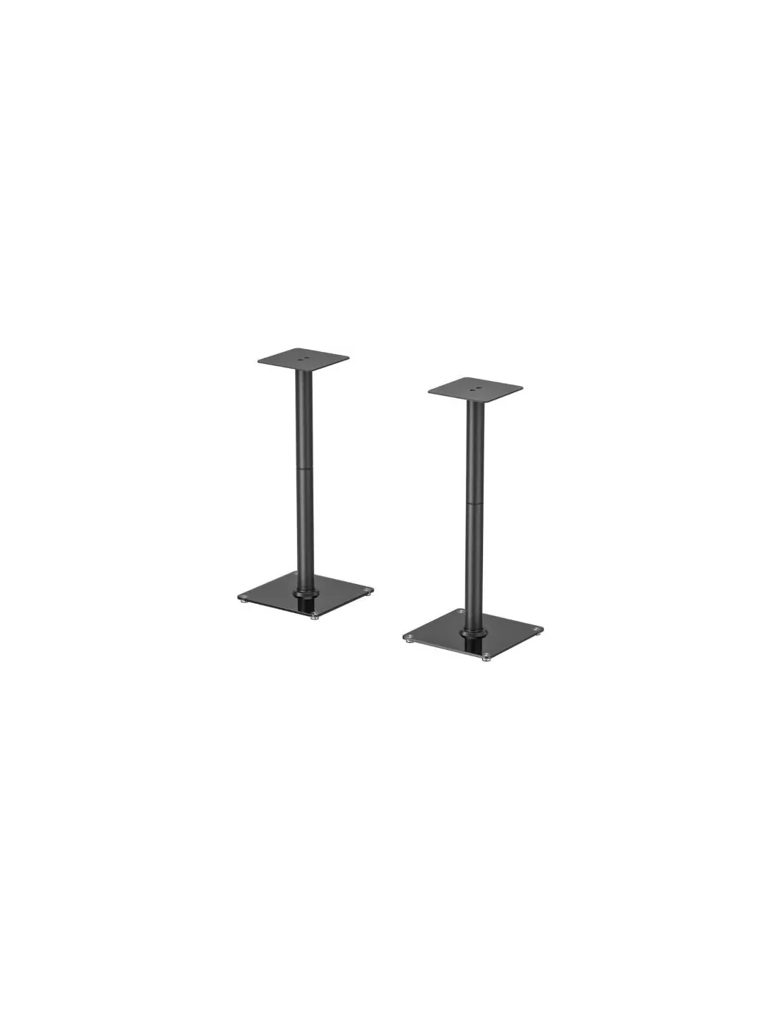 > Soporte versátil de suelo para altavoces> Fabricado con vidrio y acero de alta resistencia y pintado con pintura electrostática para un acabado perfecto.> Optimiza el rendimiento de tus altavoces con este soporte de suelo versátil, diseñado para combinar estabilidad, durabilidad y estilo.> Fabricado en acero de alta resistencia y vidrio, con un acabado en pintura electrostática, garantiza un soporte firme y un diseño moderno que se integra en cualquier espacio.> Ideal para el salón, estudios o home cinema, este soporte mantiene tus altavoces a la altura óptima, asegurando un sonido limpio, claro y preciso.> Carga máxima: 25 kgs> Altura: 765 mm> Base de suelo: 300×300 mm> Color: NegroContenido- 1 x Soporte para altavoces (1 Par)- 1 x Kit de montaje (No incluye herramientas)- 1 x Manual de instrucciones multi idioma