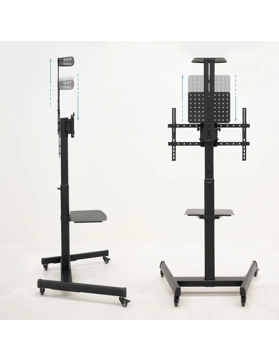 TooQ “COMETA” Soporte de Suelo con Ruedas con Regulación de Altura para Pantallas 37"- 70", Rotación 90°, Negro