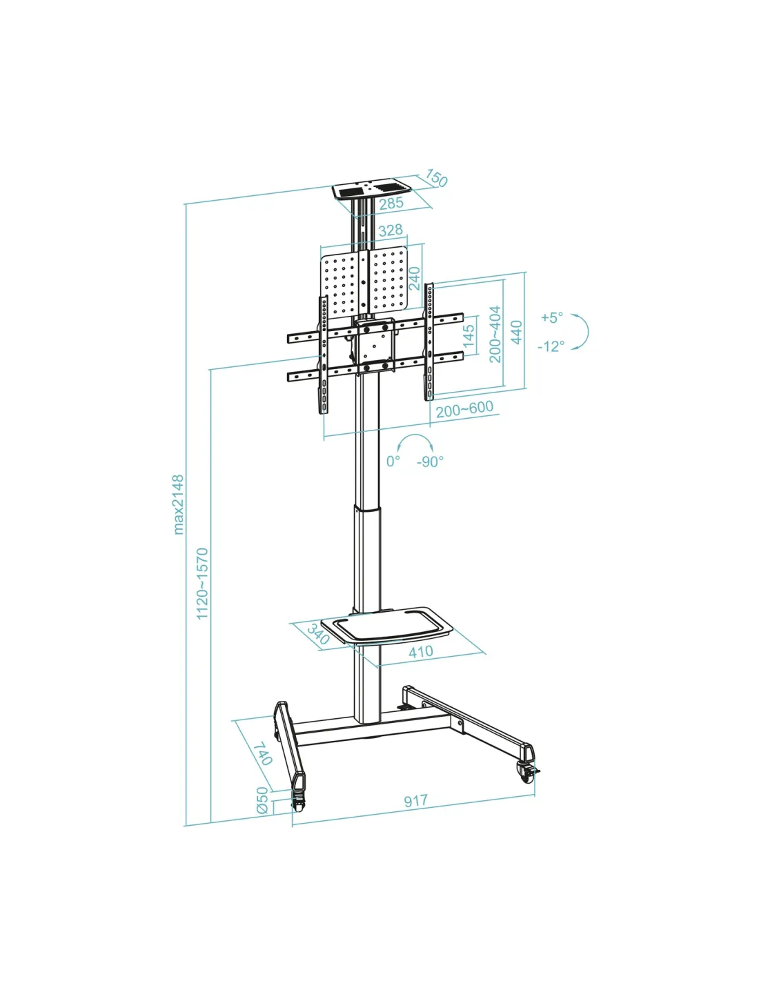 TooQ “COMETA” Soporte de Suelo con Ruedas con Regulación de Altura para Pantallas 37"- 70", Rotación 90°, Negro, 200 x 200 mm, 600 x 400 mm, -12 - 5°, 90°, Acero, Negro