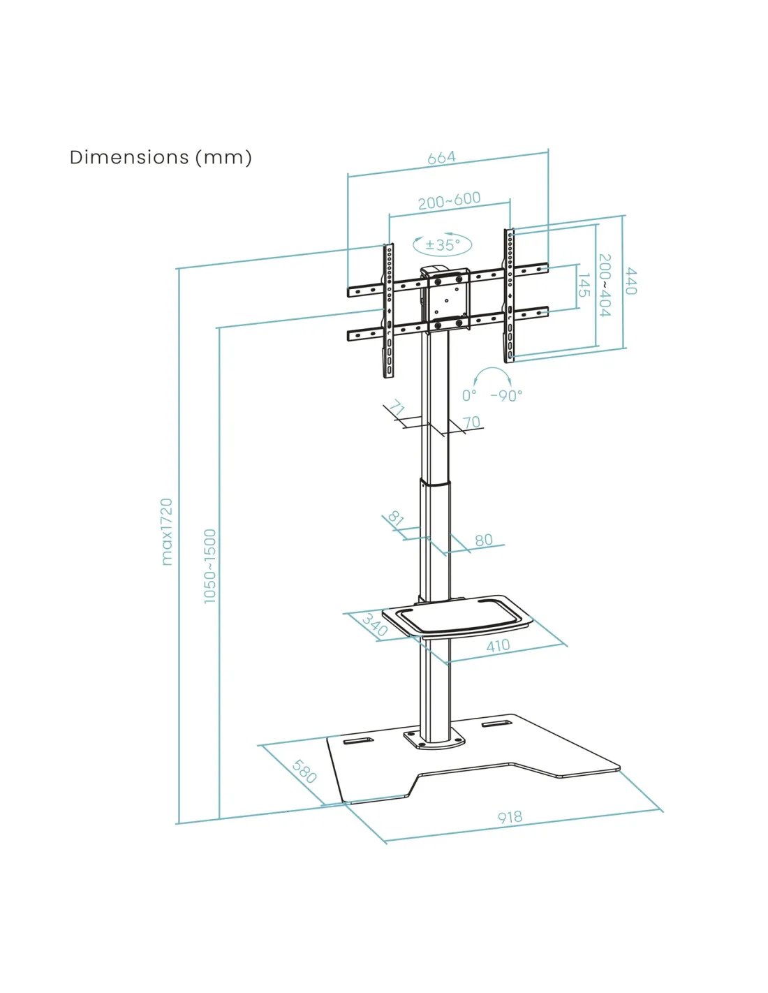 - Rango de ajuste de altura del soporte: 1050-1500 mm