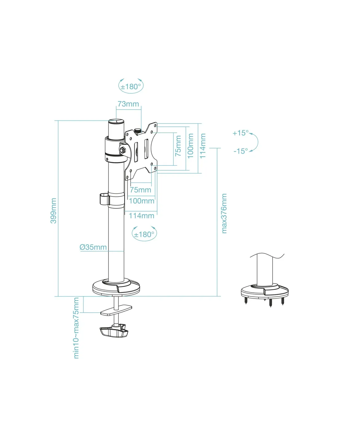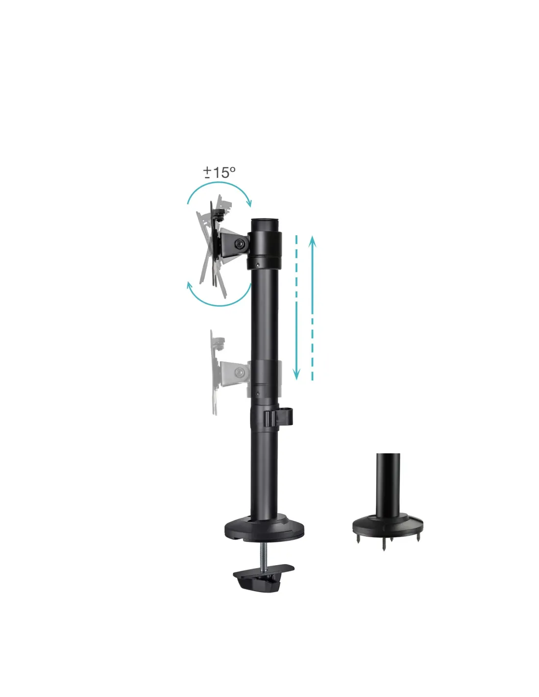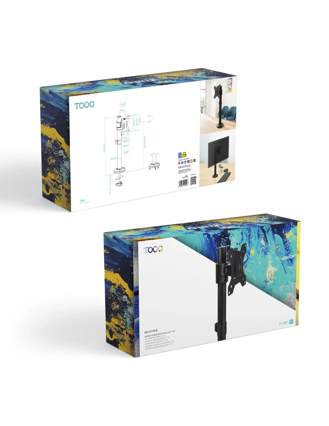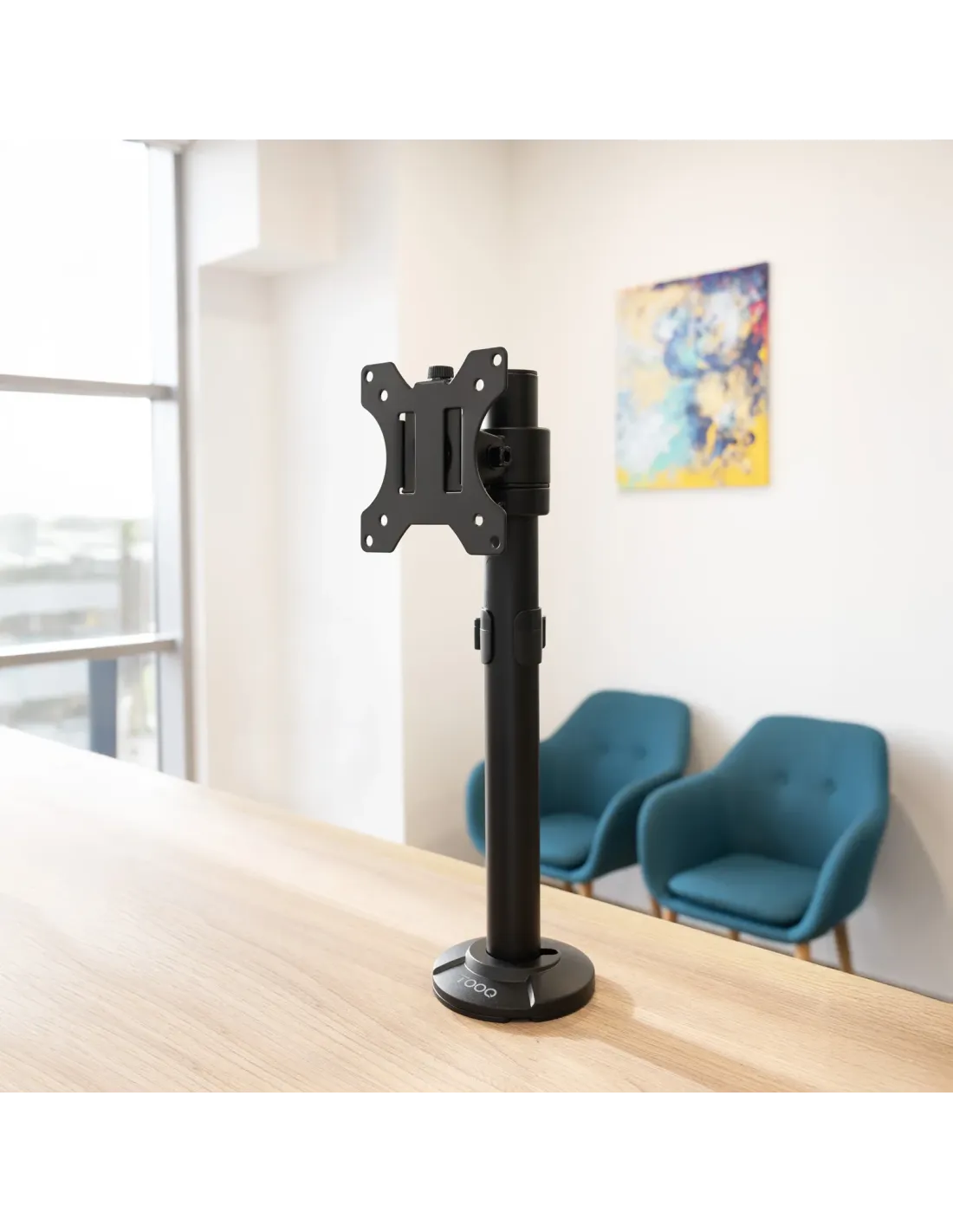 TooQ Soporte de Mesa para Pantallas 17"-32", Color Negro. Montaje: Atornillado, Capacidad máxima de peso: 8 kg, Tamaño mínimo de pantalla: 43,2 cm (17"), Tamaño máximo de pantalla: 81,3 cm (32"), Compatibilidad con interfaz de montaje (min): 75 x 75 mm, Compatibilidad con interfaz de montaje (max): 100 x 100 mm. Ajustes de altura, Ángulo de giro (alcance): -180 - 180°, Ángulo de inclinación: -15 - 15°. Color del producto: Negro