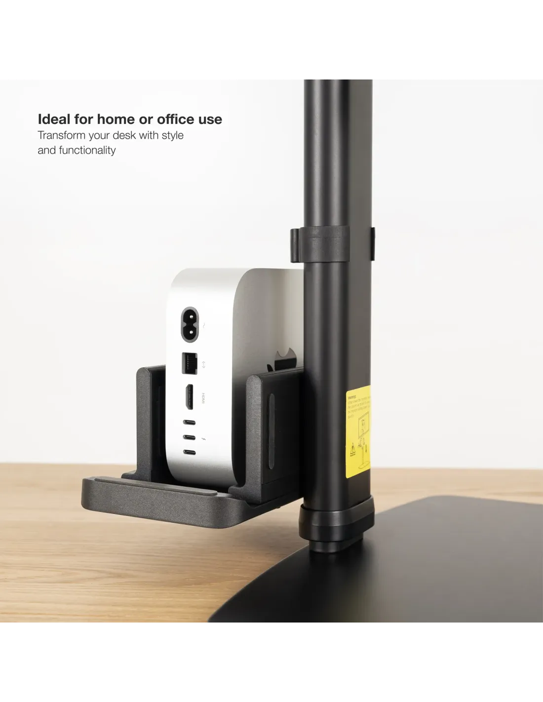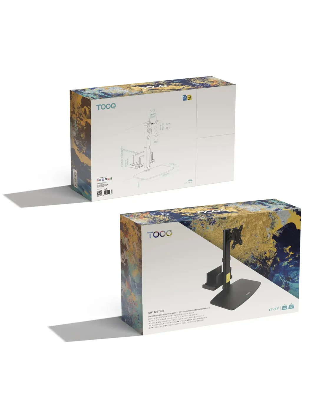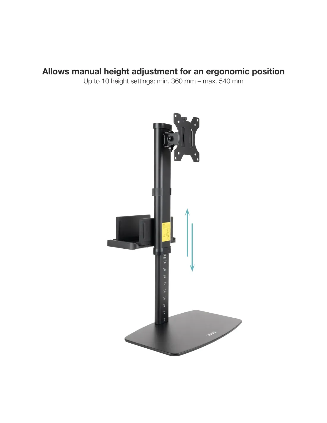 TooQ Soporte de mesa para pantallas 17”-27” con soporte integrado para CPU Ligera, 6 kg, 43,2 cm (17"), 68,6 cm (27"), 100 x 100 mm, Ajustes de altura, Negro
