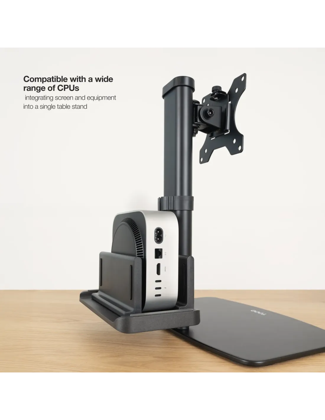TooQ Soporte de mesa para pantallas 17”-27” con soporte integrado para CPU Ligera