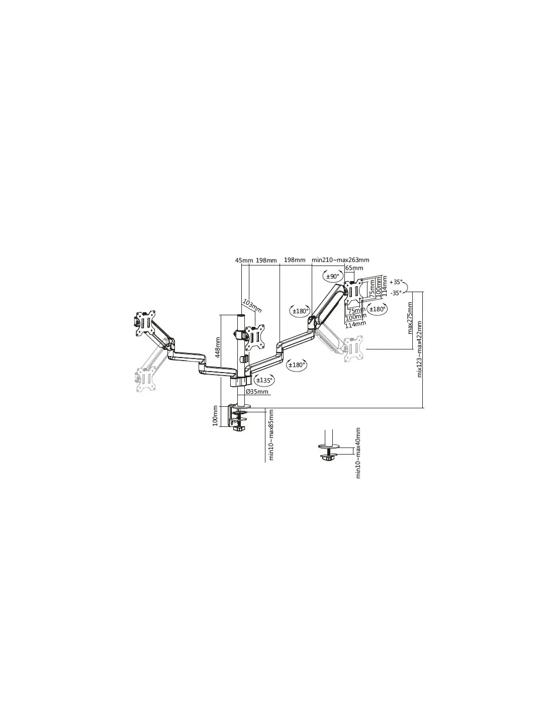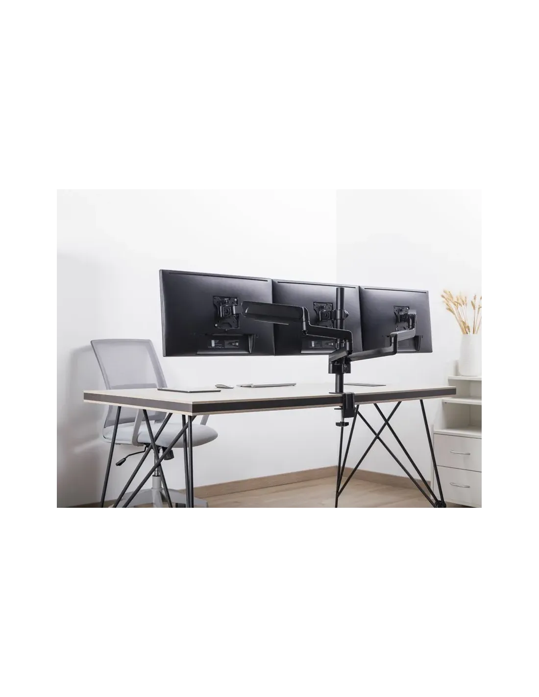 Equip Soporte de sobremesa para monitor triple de 17"-27, Abrazadera, 21 kg, 75 x 75 mm, 100 x 100 mm, Ajustes de altura, Negro