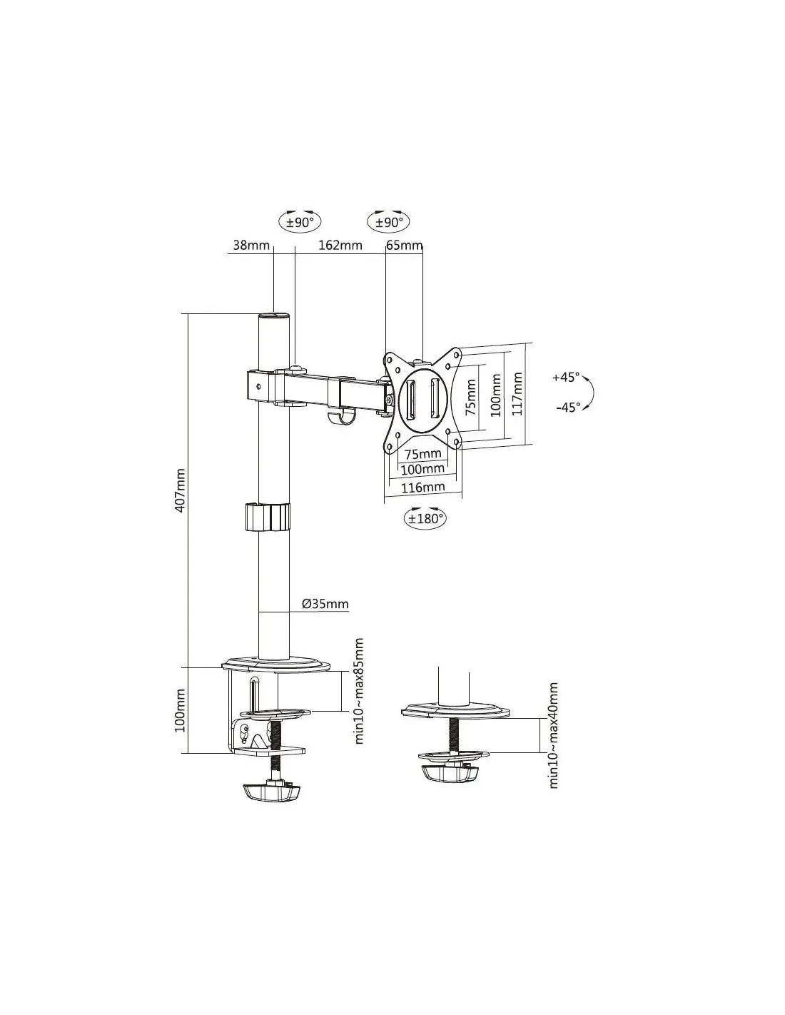 Equip Soporte de escritorio articulado para monitor de 17«-32», negro, Abrazadera, 9 kg, 43,2 cm (17"), 81,3 cm (32"), 100 x 100 mm, Negro
