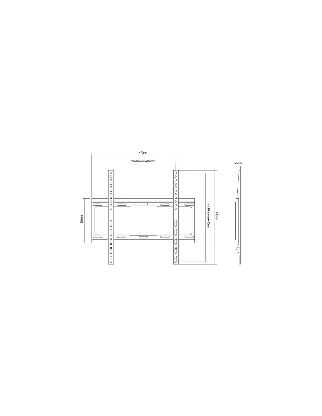 El soporte de montaje en pared Equip es un producto compacto peroresistente que garantiza una instalación segura de su televisor LCD /Plasma. Siga la guía gráfica incluida en el paquete, puede instalar eltelevisor por su cuenta con facilidad. El soporte de pared sirve para lamayoría de los materiales de la pared de ladrillo, hormigón y madera, lo quehace la opción ideal para que usted pueda configurar sus pantallas.Especificaciones:Soporta 81 ~ 140 cm (32 "~ 55") Pantalla planaDistancia desde el televisor a la pared: 25 mmEstándar de montaje VESA: Máximo 400 x 400 mmPatrón de agujeros (W x H): Máximo 400 x 400 mmSoporte pantalla plana hasta 40kgsMaterial: Acero