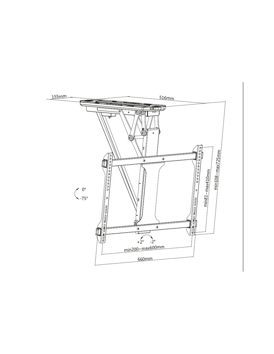 Equip 650329 Soporte de techo motorizado para TV de 32"-70, 177,8 cm (70"), 200 x 100 mm, 600 x 400 mm, 0 - 75°, Plástico, Acero inoxidable, Negro