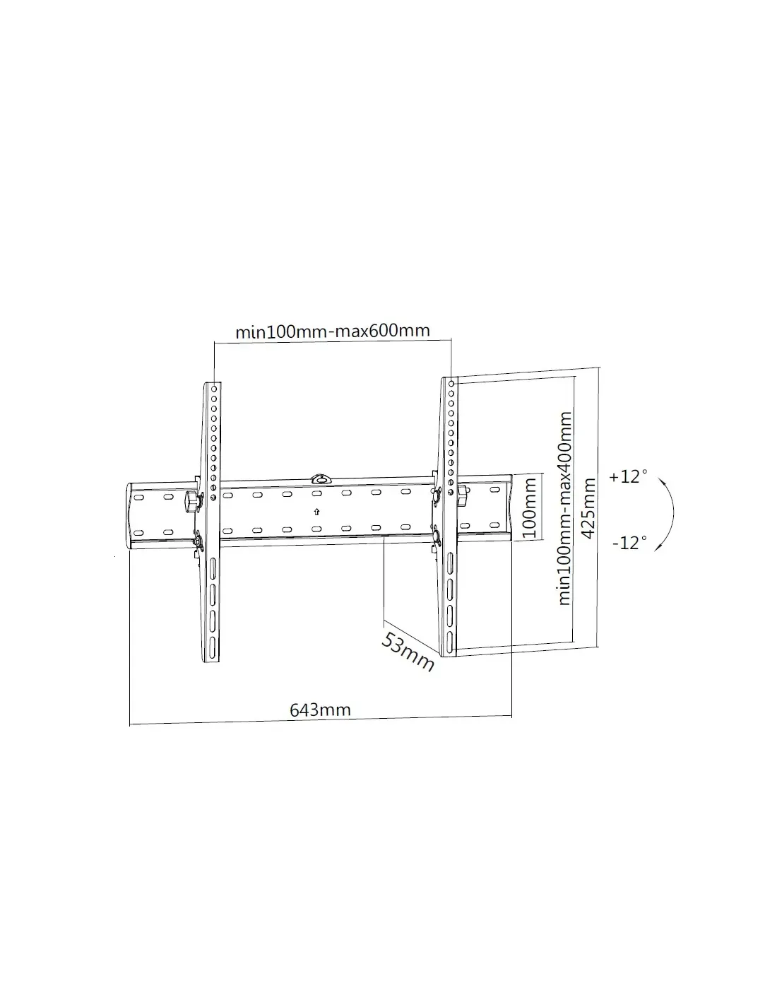 Equip 650332 Soporte de pared para TV inclinable de 37"-75, 177,8 cm (70"), 200 x 200 mm, 600 x 400 mm, -12 - 12°, Acero inoxidable, Negro