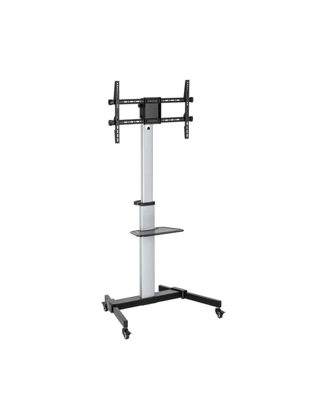 Ajuste de alturaMáx. VESA: 600x400Máx. Capacidad de carga: 50 kgAltura ajustable del estante para cámara/DVD para la posición deseadaDiseño de inclinación libre para múltiples ángulos de visión del monitorRuedas para movilidad, bloqueables para mayor seguridad.Rotación de 90 para sostener fácilmente la pantalla en orientación vertical u horizontalEstante para componentes de DVD/AVRotación de pantalla: 90Cumple con los estándares VESAGestión de cables integradaGeneralColor: PlataEAN: 4015867235089Número de modelo: 650630MisceláneasTamaño de pantalla compatible: 37"-86"OtrosAprobación y Cumplimiento: ALCANCE, RoHScontenidos del paquete: Kits de tornillos del manual del usuario del carrito para TVEspecificaciones físicasPeso del producto (kg): 14,86Dimensiones (Ancho x Fondo x Alto): 848x610x1820mmEspecificaciones del SistemaMaterial: Plástico, acero inoxidable, aluminioCapacidad de carga (kg): 50Cantidad de soporte de pantallas: 1Rango de inclinación: '+5~-10Compatibilidad VESA: 200x200,300x200,400x200,300x300,400x300,400x400,600x400Tipo de soporte: InclinableRotacion de pantalla: 0~+90Mantenimiento de cable: SíTamaño de tubería (altura del poste): 1200-1600 mmSoporte TV Curva (Monitores): SíSoporte para cámara: No