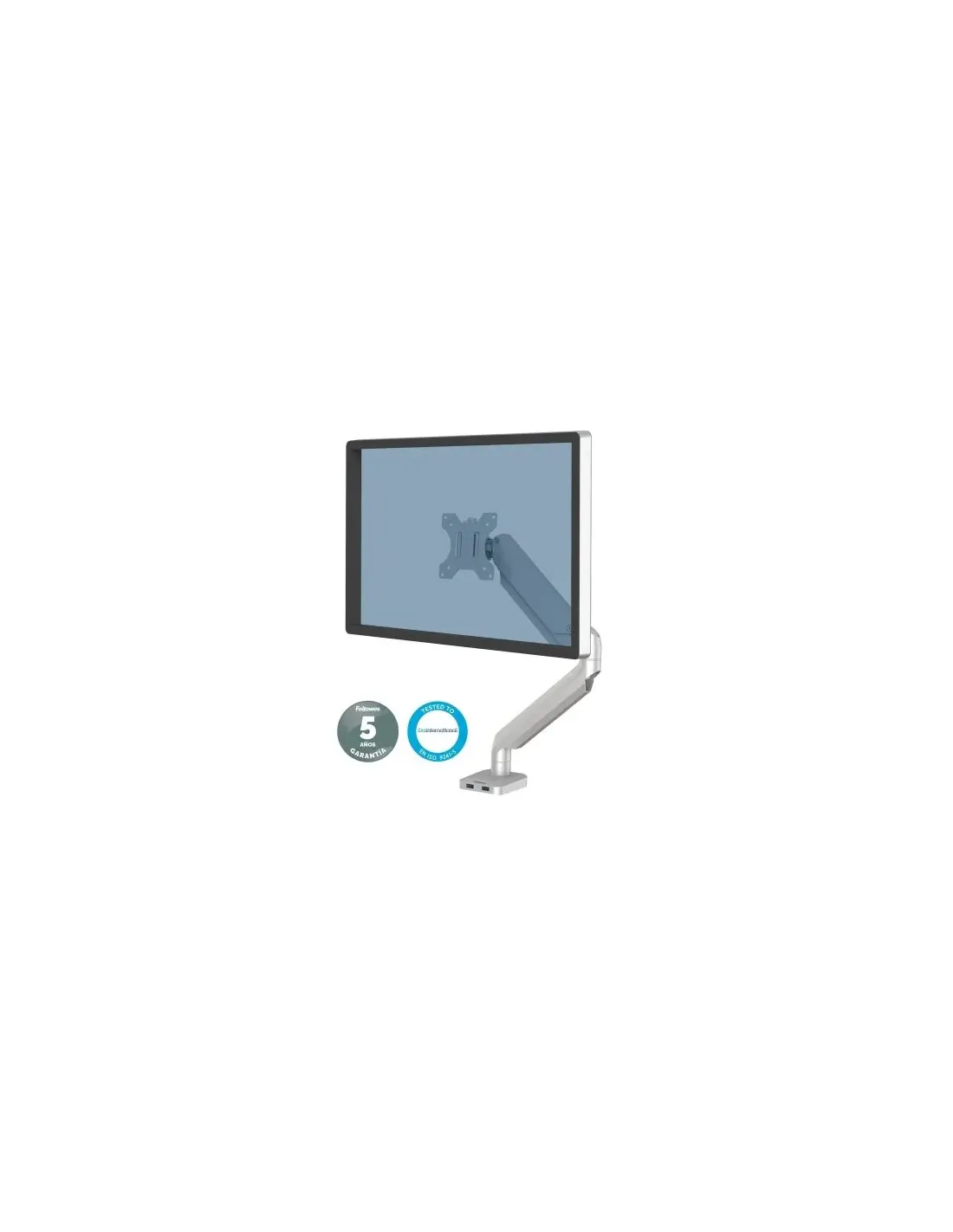 DestacadoCapacidad máxima de peso: 8 kgTamaño máximo de pantalla: 81,3 cm (32")Número de pantallas soportadas: 1Pinza/Atornillado Tipo de montaje: EscritorioCompatibilidad con interfaz de montaje (max): 100 x 100 mmManual Ajustes de altura Ajuste de la inclinaciónGestión de cablesAcero PlataFellowes Platinum Series 8056401. Montaje: Pinza/Atornillado, Capacidad máxima de peso: 8 kg, Tamaño máximo de pantalla: 81,3 cm (32"), Compatibilidad con interfaz de montaje (min): 75 x 75 mm,Compatibilidad con interfaz de montaje (max): 100 x 100 mm. Ajustes de altura, Ángulo de inclinación: -45 - 45. Color del producto: PlataPeso y dimensionesAltura590 mmAncho114 mmPeso2,74 kgProfundidad495 mmErgonomíaCantidad de puertos tipo A USB 3.2 Gen 1 (3.1 Gen 1)2Ajuste de la inclinaciónSiAjustes de alturaSiAlcance de bandeja0 - 180Gestión de cablesSiGiratorioSiNúmero de brazos1Rango de ajustes de altura135 - 415 mmTipo de ajuste de alturaManualÁngulo de inclinación-45 - 45Ángulo de giro360Ángulo de rotación360MontajeBrazo con capacidad de extensión (máx.)50,5 cmCapacidad máxima de peso8 kgCapacidad máxima de peso (por display)8 kgCompatibilidad con interfaz de montaje (min)75 x 75 mmCompatibilidad con interfaz de montaje (max)100 x 100 mmEspesor del escritorio (min)1 cmEspesor del escritorio (max)8,5 cmIdóneo para TVNoInterfaz de panel de montaje75 x 75,100 x 100 mmMontajePinza/AtornilladoNúmero de pantallas soportadas1Tamaño máximo de pantalla81,3 cm (32")Tipo de montajeEscritorioDiseñoCertificaciónFIRA InternationalColor del productoPlataMaterial de la carcasaAceroDetalles técnicosPeriodo de garantía3 año(s)