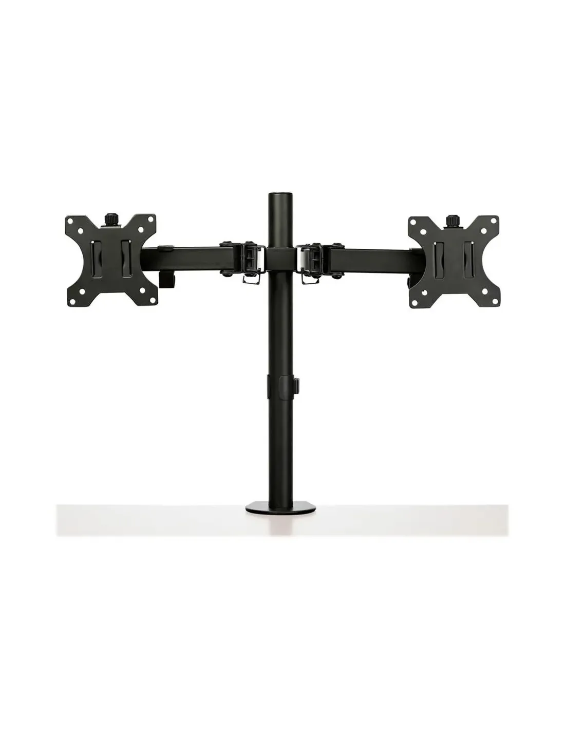 Características del Soporte Dual para Monitores StarTech.com ARMDUAL2El brazo de soporte StarTech.com ARMDUAL2 es una solución robusta y versátil para quienes necesitan optimizar su espacio de trabajo con dos monitores de hasta 32". Diseñado en acero resistente y con un sistema de brazo articulado, este soporte permite ajustar la posición de las pantallas de forma fácil y precisa, ideal para entornos profesionales, oficinas o setups técnicos donde la ergonomía y el orden son prioritarios.Diseño articulado y completamente ajustableGracias a su estructura metálica de alta calidad y su diseño ergonómico, el ARMDUAL2 ofrece una experiencia de uso fluida y personalizable. Permite ajustes completos de altura, inclinación, giro y rotación, adaptándose a distintas posturas y tipos de trabajo.Compatibilidad VESA: 75 x 75 mm y 100 x 100 mmRotación: de -180° a 180° / Giro: -90° a 90° / Inclinación: -45° a 45°Ajustes: altura, orientación vertical, giro y rotaciónCapacidad de carga y compatibilidad de pantallasEste soporte está diseñado para soportar hasta 8 kg por monitor, compatible con pantallas de entre 13" y 32". Ya sea que trabajes con pantallas estándar o configuraciones duales para productividad o vigilancia, este brazo asegura estabilidad y rendimiento continuo.Carga máxima por monitor: 8 kgTamaño de pantalla compatible: de 13" a 32"Montaje: se instala en el escritorio mediante pinza o pasacablesOrganización de cables y facilidad de instalaciónIncluye un sistema de gestión de cables integrado que mantiene tu escritorio limpio y libre de enredos. Además, el kit incorpora todos los elementos necesarios para una instalación rápida, tanto con pinza como mediante ojal, lo que facilita su integración en distintos tipos de escritorios.Gestor de cables: clips integrados en el brazoFijación: mediante pinza de escritorio o placa pasacablesIncluye herramientas y tornillería completa para el montajeConstrucción sólida y dimensionesFabricado en acero de alta resistencia, este soporte garantiza durabilidad y estabilidad incluso en uso intensivo. Su diseño compacto y funcional se adapta sin problema a escritorios profesionales.Material: aceroDimensiones: 91.3 cm (ancho) x 14.8 cm (profundidad) x 54.8 cm (alto)Peso del producto: 4.6 kgOtras especificacionesColor: negroDimensiones del embalaje: 44.8 cm x 22.5 cm x 13.5 cmPeso del embalaje: 4.8 kgContenido del paquete: poste, tapa de poste, tornillería variada (M4, M5), espaciadores, pinza de escritorio, placa base del ojal, clips para cables, microperillas de ajuste, llaves hexagonales, etc.