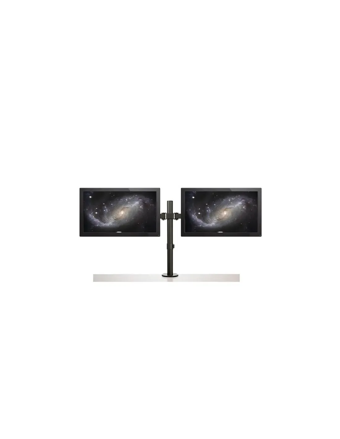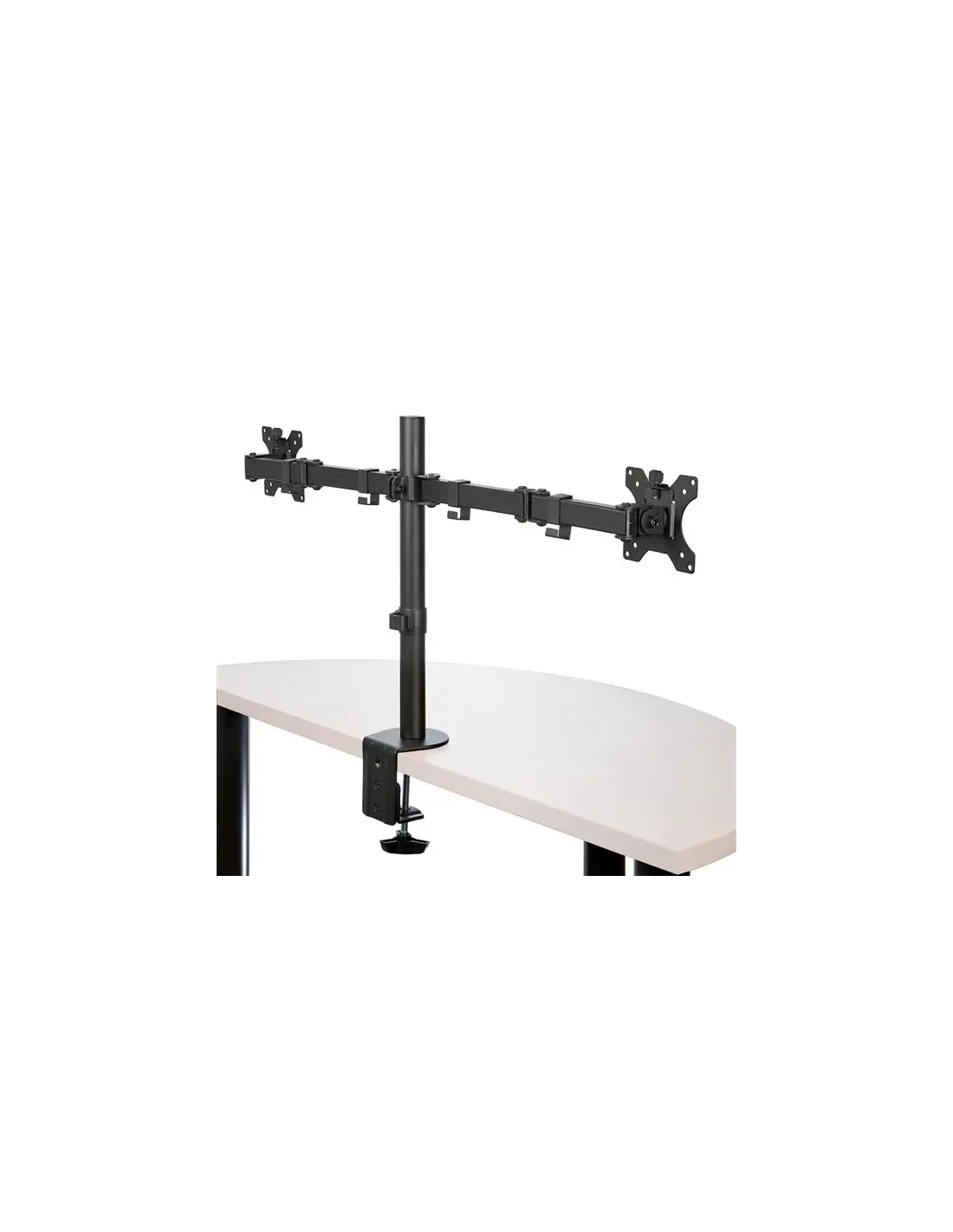 Características del Soporte Dual para Monitores StarTech.com ARMDUAL2El brazo de soporte StarTech.com ARMDUAL2 es una solución robusta y versátil para quienes necesitan optimizar su espacio de trabajo con dos monitores de hasta 32". Diseñado en acero resistente y con un sistema de brazo articulado, este soporte permite ajustar la posición de las pantallas de forma fácil y precisa, ideal para entornos profesionales, oficinas o setups técnicos donde la ergonomía y el orden son prioritarios.Diseño articulado y completamente ajustableGracias a su estructura metálica de alta calidad y su diseño ergonómico, el ARMDUAL2 ofrece una experiencia de uso fluida y personalizable. Permite ajustes completos de altura, inclinación, giro y rotación, adaptándose a distintas posturas y tipos de trabajo.Compatibilidad VESA: 75 x 75 mm y 100 x 100 mmRotación: de -180° a 180° / Giro: -90° a 90° / Inclinación: -45° a 45°Ajustes: altura, orientación vertical, giro y rotaciónCapacidad de carga y compatibilidad de pantallasEste soporte está diseñado para soportar hasta 8 kg por monitor, compatible con pantallas de entre 13" y 32". Ya sea que trabajes con pantallas estándar o configuraciones duales para productividad o vigilancia, este brazo asegura estabilidad y rendimiento continuo.Carga máxima por monitor: 8 kgTamaño de pantalla compatible: de 13" a 32"Montaje: se instala en el escritorio mediante pinza o pasacablesOrganización de cables y facilidad de instalaciónIncluye un sistema de gestión de cables integrado que mantiene tu escritorio limpio y libre de enredos. Además, el kit incorpora todos los elementos necesarios para una instalación rápida, tanto con pinza como mediante ojal, lo que facilita su integración en distintos tipos de escritorios.Gestor de cables: clips integrados en el brazoFijación: mediante pinza de escritorio o placa pasacablesIncluye herramientas y tornillería completa para el montajeConstrucción sólida y dimensionesFabricado en acero de alta resistencia, este soporte garantiza durabilidad y estabilidad incluso en uso intensivo. Su diseño compacto y funcional se adapta sin problema a escritorios profesionales.Material: aceroDimensiones: 91.3 cm (ancho) x 14.8 cm (profundidad) x 54.8 cm (alto)Peso del producto: 4.6 kgOtras especificacionesColor: negroDimensiones del embalaje: 44.8 cm x 22.5 cm x 13.5 cmPeso del embalaje: 4.8 kgContenido del paquete: poste, tapa de poste, tornillería variada (M4, M5), espaciadores, pinza de escritorio, placa base del ojal, clips para cables, microperillas de ajuste, llaves hexagonales, etc.