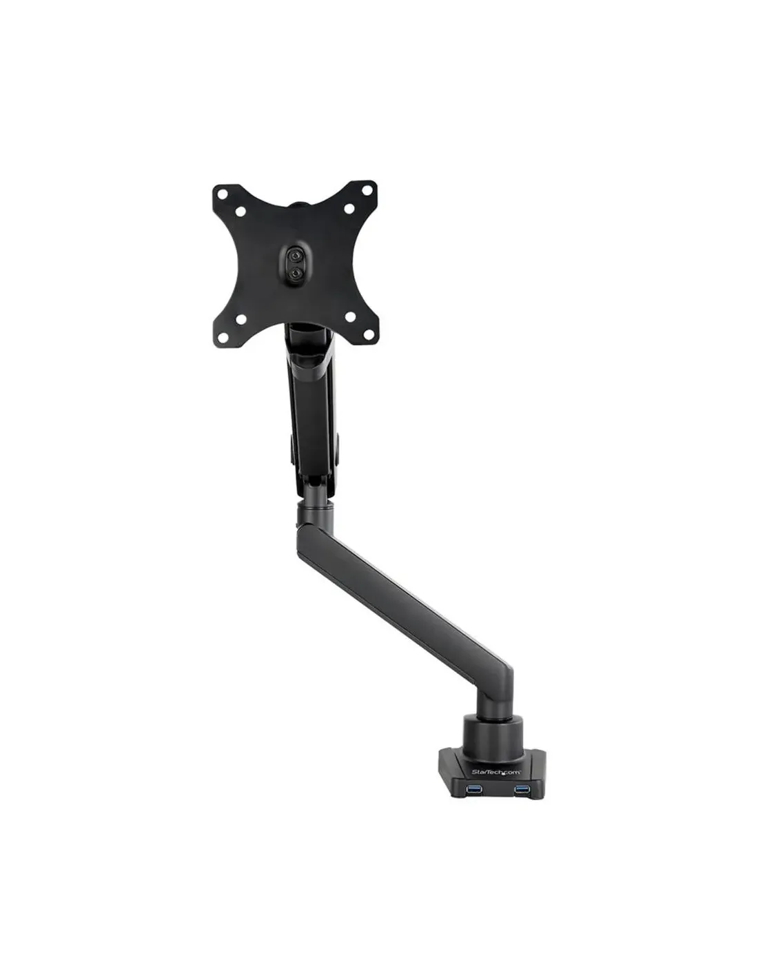 Características del StarTech.com ARMSLIM2USB3 - Soporte de Escritorio para MonitorEl **soporte de escritorio StarTech.com ARMSLIM2USB3** es la solución ideal para quienes buscan una configuración de trabajo más ergonómica, organizada y funcional. Diseñado para monitores de hasta 34" y con una capacidad de carga de hasta 8 kg, este brazo articulado con diseño fino y moderno permite ajustar la posición del monitor con un solo toque, maximizando el confort y el espacio en el escritorio. Además, incorpora un **hub USB 3.0 de 2 puertos**, lo que añade conectividad directa sin ocupar puertos adicionales del PC.Diseño ergonómico con movimiento completoGracias a su sistema de articulación completo y su construcción en **aluminio reforzado**, este soporte permite una configuración totalmente ajustable en altura, inclinación y giro. El movimiento fluido facilita encontrar la posición más cómoda para trabajar durante horas sin fatiga visual ni tensión cervical.Inclinación: de -90° a 90°Giro horizontal: -90° a 90°Ajuste en altura y orientación verticalInstalación versátil y gestión de cablesEl ARMSLIM2USB3 puede montarse mediante **pinza de sujeción o abrazadera de ojal**, adaptándose a diferentes tipos de escritorios. Incluye un completo kit de montaje y un sistema integrado de organización de cables, que permite mantener el espacio de trabajo limpio y despejado.Interfaz de montaje VESA: 75 x 75 mm y 100 x 100 mmCompatible con pantallas de 17" a 34"Organizador de cables integradoConectividad al alcance de tu manoUna de las grandes ventajas de este soporte es su **hub USB 3.0 de 2 puertos integrado**, que permite conectar periféricos o dispositivos de almacenamiento directamente desde el escritorio, ahorrando tiempo y mejorando la accesibilidad.2 puertos USB 3.0 de alta velocidadFácil acceso frontalIdeal para conectar ratones, teclados, memorias USB o auricularesDiseño compacto y materiales de calidadSu estructura delgada de solo 11,5 cm de ancho y fabricada en **aluminio de alta resistencia** ofrece estabilidad y durabilidad, sin renunciar a un aspecto moderno y profesional. Es perfecto para entornos de oficina, estaciones de trabajo en casa o escritorios minimalistas.Dimensiones: 11,5 x 44,5 x 54,7 cmPeso: 2,85 kgColor: negroOtras especificacionesPeso máximo de carga: 8 kgTipo: kit de montaje con brazo articuladoComponentes incluidos: tornillería, llaves hexagonales, clip y placa pasacablesDimensiones del embalaje: 43,5 x 24 x 11,7 cm / 3,5 kgUso recomendado: pantallas LCD planas o curvadas