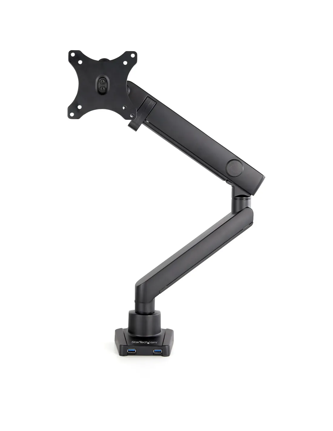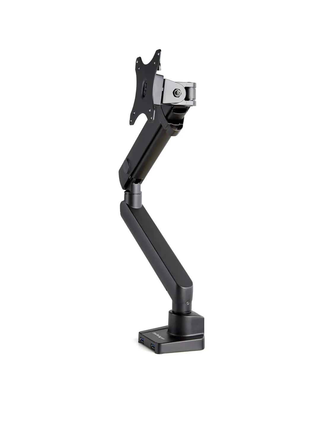 Características del StarTech.com ARMSLIM2USB3 - Soporte de Escritorio para MonitorEl **soporte de escritorio StarTech.com ARMSLIM2USB3** es la solución ideal para quienes buscan una configuración de trabajo más ergonómica, organizada y funcional. Diseñado para monitores de hasta 34" y con una capacidad de carga de hasta 8 kg, este brazo articulado con diseño fino y moderno permite ajustar la posición del monitor con un solo toque, maximizando el confort y el espacio en el escritorio. Además, incorpora un **hub USB 3.0 de 2 puertos**, lo que añade conectividad directa sin ocupar puertos adicionales del PC.Diseño ergonómico con movimiento completoGracias a su sistema de articulación completo y su construcción en **aluminio reforzado**, este soporte permite una configuración totalmente ajustable en altura, inclinación y giro. El movimiento fluido facilita encontrar la posición más cómoda para trabajar durante horas sin fatiga visual ni tensión cervical.Inclinación: de -90° a 90°Giro horizontal: -90° a 90°Ajuste en altura y orientación verticalInstalación versátil y gestión de cablesEl ARMSLIM2USB3 puede montarse mediante **pinza de sujeción o abrazadera de ojal**, adaptándose a diferentes tipos de escritorios. Incluye un completo kit de montaje y un sistema integrado de organización de cables, que permite mantener el espacio de trabajo limpio y despejado.Interfaz de montaje VESA: 75 x 75 mm y 100 x 100 mmCompatible con pantallas de 17" a 34"Organizador de cables integradoConectividad al alcance de tu manoUna de las grandes ventajas de este soporte es su **hub USB 3.0 de 2 puertos integrado**, que permite conectar periféricos o dispositivos de almacenamiento directamente desde el escritorio, ahorrando tiempo y mejorando la accesibilidad.2 puertos USB 3.0 de alta velocidadFácil acceso frontalIdeal para conectar ratones, teclados, memorias USB o auricularesDiseño compacto y materiales de calidadSu estructura delgada de solo 11,5 cm de ancho y fabricada en **aluminio de alta resistencia** ofrece estabilidad y durabilidad, sin renunciar a un aspecto moderno y profesional. Es perfecto para entornos de oficina, estaciones de trabajo en casa o escritorios minimalistas.Dimensiones: 11,5 x 44,5 x 54,7 cmPeso: 2,85 kgColor: negroOtras especificacionesPeso máximo de carga: 8 kgTipo: kit de montaje con brazo articuladoComponentes incluidos: tornillería, llaves hexagonales, clip y placa pasacablesDimensiones del embalaje: 43,5 x 24 x 11,7 cm / 3,5 kgUso recomendado: pantallas LCD planas o curvadas