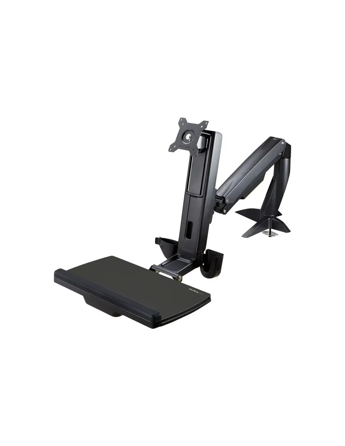 Características del StarTech.com Brazo de Soporte de Pie y SentadoEl **soporte ergonómico de escritorio StarTech.com** está diseñado para transformar tu espacio de trabajo en una estación flexible y cómoda, permitiéndote alternar entre posiciones de pie y sentado con total fluidez. Ideal para entornos de oficina, teletrabajo o espacios profesionales donde la **ergonomía y el orden** son una prioridad, este soporte permite montar un monitor y un teclado en una sola estructura ajustable. Su diseño robusto y modular facilita un montaje sencillo y seguro sobre el escritorio.Diseño ergonómico para trabajar de pie o sentadoEl principal valor de este kit es su capacidad de **ajuste en altura hasta 43,9 cm**, lo que permite al usuario trabajar de pie o sentado sin comprometer la postura. El brazo permite una transición rápida y estable, con soporte tanto para monitor como para teclado.Ajuste vertical de hasta 43,9 cmRotación de 360° para una visualización flexibleInclinación ajustable de -30° a 65°Compatibilidad y montaje VESAEste soporte es totalmente compatible con los estándares **VESA 75x75 mm y 100x100 mm**, lo que lo hace apto para una amplia variedad de monitores de hasta 24 pulgadas. Su estructura permite un montaje firme en la superficie del escritorio mediante abrazadera y base, ofreciendo estabilidad y facilidad de instalación.Compatible con pantallas de hasta 24"Interfaz VESA: 75x75 mm y 100x100 mmSoporta hasta 7,9 kg de pesoOrganización inteligente y componentes incluidosEl kit incluye un **organizador de cables integrado**, ideal para mantener un espacio de trabajo limpio y sin enredos. Además, viene con todos los accesorios de montaje necesarios, incluyendo herramientas y tornillería variada, para facilitar una instalación rápida.Organizador de cables integrado en la estructuraIncluye llaves hexagonales, destornillador, tornillería y placas de montajeComponentes: bandeja para teclado, brazo de monitor, base, placa de arandela y másIdeal para entornos profesionales y estaciones compartidasGracias a su capacidad de ajuste y robustez, este soporte es ideal para estaciones de trabajo compartidas, entornos de coworking o usuarios que pasan muchas horas frente al monitor. Mejora la postura, reduce la fatiga y aumenta la productividad diaria.Transición fácil entre posiciones de trabajoMejora la ergonomía y comodidadFácil de instalar en cualquier escritorioOtras especificacionesAltura total del brazo: 89 cmProfundidad total: 94 cmEncuadre lateral ajustable: de -90° a 90°Diseñado para: P/N LAPTOP-SIT-STAND