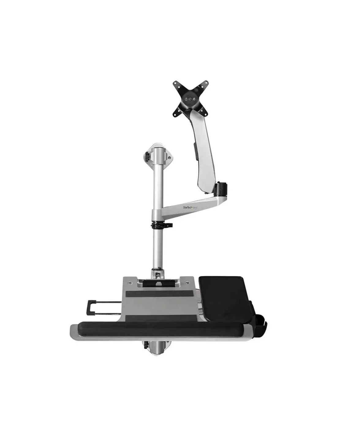 Características de la Estación de Trabajo de Montaje en Pared StarTech.comLa estación de trabajo de montaje en pared de StarTech.com es una solución ergonómica, versátil y robusta para entornos donde el espacio es limitado y se requiere una organización eficiente. Diseñada para montar en pared, permite integrar monitor, teclado y ratón en una sola estructura compacta, ideal para oficinas, centros médicos, puntos de información o espacios industriales.Diseño ajustable para máxima ergonomíaGracias a sus ajustes de altura, inclinación, rotación y encuadre, esta estación se adapta a diferentes posturas y usuarios. Es perfecta para configuraciones de uso compartido o espacios donde se requiera flexibilidad de posición.Rotación de 360° para una visualización libre desde cualquier ánguloInclinación ajustable de -15° a 90°Encuadre lateral de -120° a 120°Compatibilidad y organización profesionalEs compatible con monitores de 13" a 30" mediante montaje VESA (75 x 75 mm y 100 x 100 mm) y soporta hasta 11,5 kg de carga. Incluye un completo sistema de gestión de cables integrada para mantener todo ordenado y libre de enredos.Incluye bandeja para teclado y alfombrilla de ratón EVACompatible con pantallas LCD, teclado y ratónOrganizador de cables integrado en el sistemaConstrucción resistente y componentes incluidosFabricada con materiales de alta durabilidad como aluminio, acero y plástico de calidad, esta estación está pensada para un uso intensivo. Su diseño modular facilita el montaje y adaptación según las necesidades del entorno.Dimensiones totales: 123 cm de alto x 68.3 cm de ancho x 74.2 cm de fondoPeso del conjunto: 11.2 kgIncluye soportes, brazos giratorios, reposamuñecas y bandeja de tecladoIdeal para entornos profesionalesEsta estación de montaje es compatible con la normativa TAA, lo que la hace adecuada para proyectos corporativos o del sector público que requieren cumplimiento con estándares de adquisición internacionales.Uso recomendado en hospitales, oficinas, recepciones y espacios industrialesMontaje seguro en pared con placa de bloqueoSoporta un flujo de trabajo organizado y flexibleOtras especificacionesDimensiones de la bandeja de teclado: 68.3 cm (ancho) x 25.8 cm (fondo)Dimensiones del embalaje: 95 cm x 14 cm x 59 cmPeso del embalaje: 11.4 kg