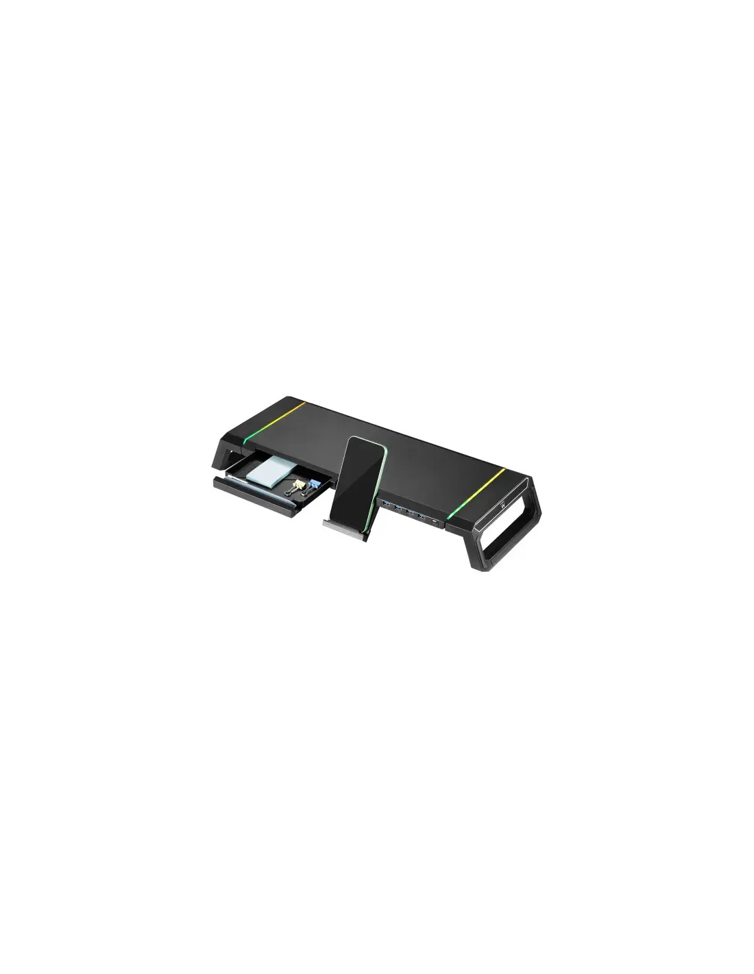 EWENT ELEVADOR PLEGABLE RGB CON HUB USB, CAJÓN Y SOPORTE DE MÓVIL