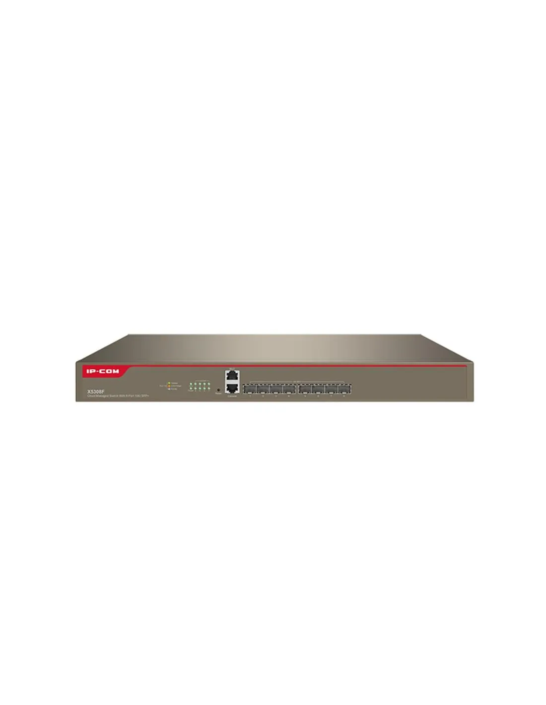 8 puertos 10G Base-X SFP+, 1 puerto de consola RJ45 y 1 puerto MGT RJ45.