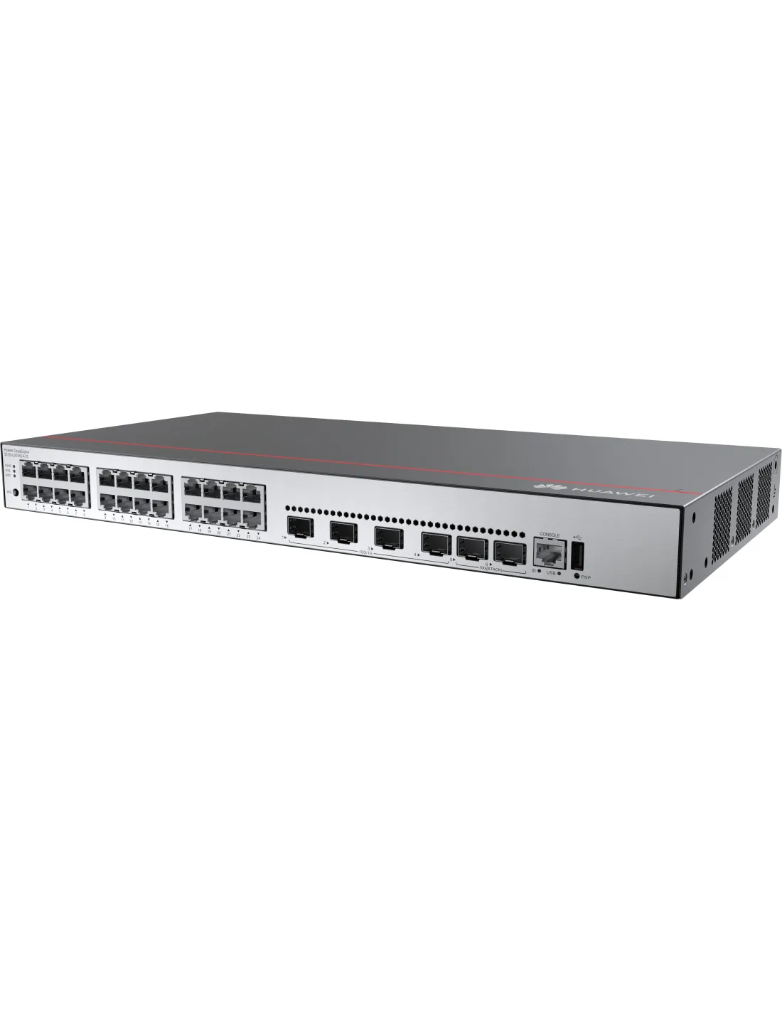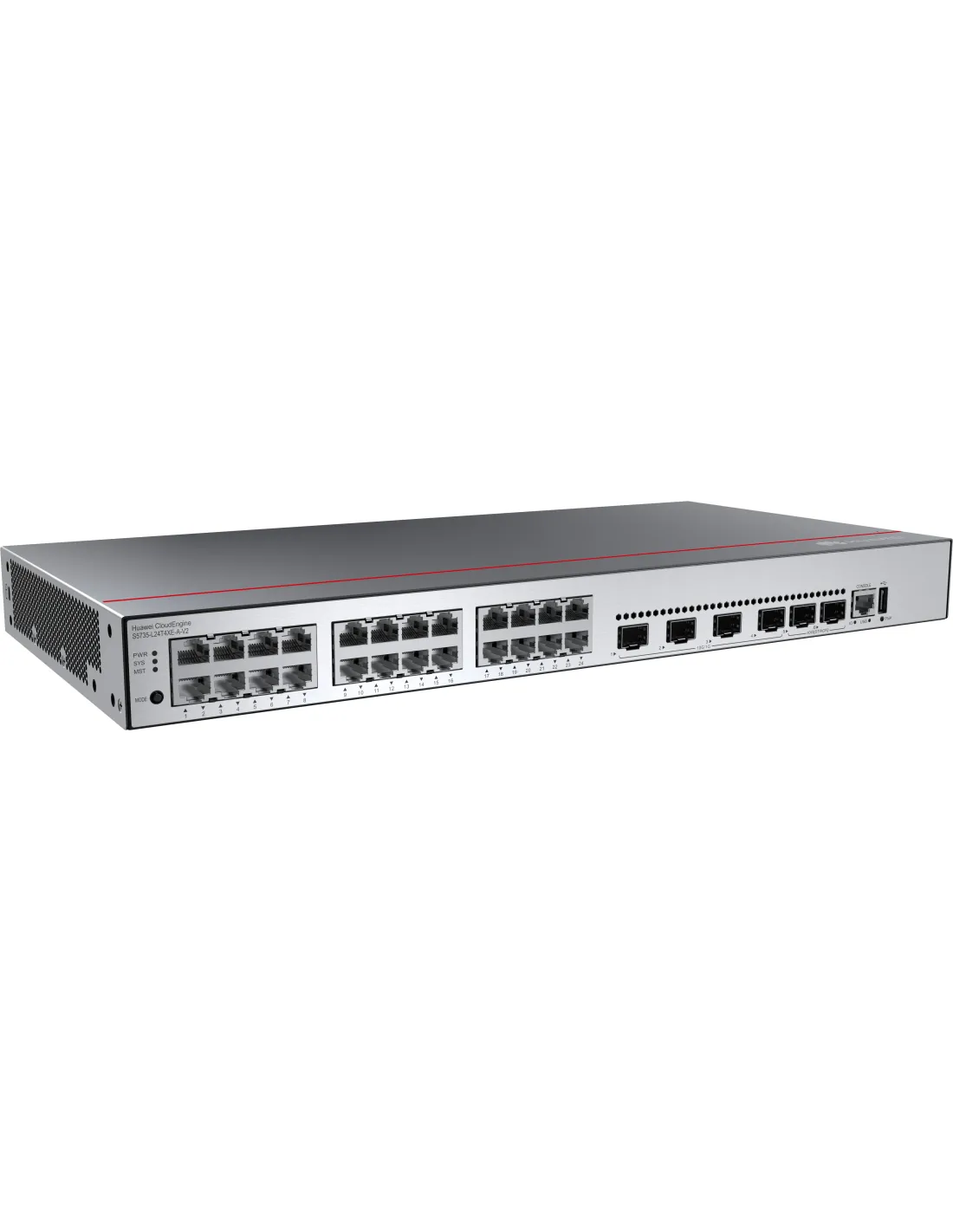 Huawei CloudEngine S5735-L24T4XE-A-V2. Tipo de interruptor: Gestionado, Capa del interruptor: L3. Puertos tipo básico de conmutación RJ-45 Ethernet: Gigabit Ethernet (10/100/1000), Cantidad de puertos básicos de conmutación RJ-45 Ethernet: 24, Cantidad de puertos USB 2.0: 1, Puerto de consola: RJ-45. Capacidad de conmutación: 176 Gbit/s. Estándares de red: IEEE 802.1x. Montaje en rack, Factor de forma: 1U