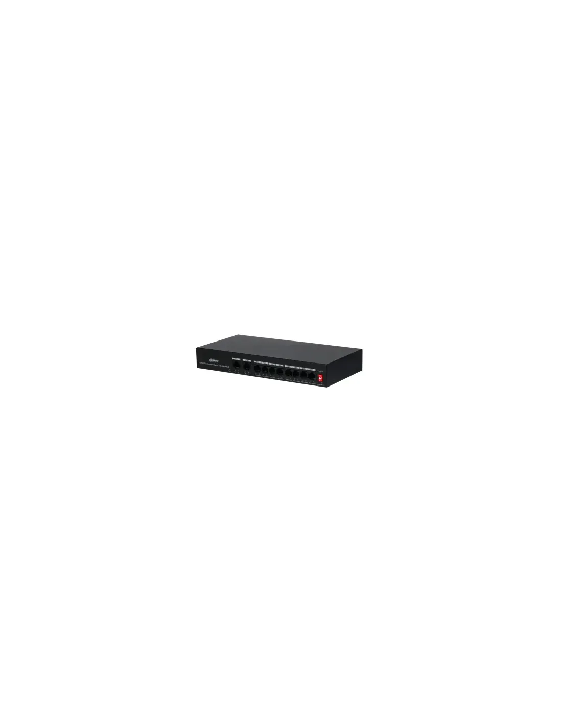 Dahua Technology PoE DH-PFS3010-8ET-65. Puertos tipo básico de conmutación RJ-45 Ethernet: Fast Ethernet (10/100), Cantidad de puertos básicos de conmutación RJ-45 Ethernet: 10. Tabla de direcciones MAC: 2000 entradas, Capacidad de conmutación: 2 Gbit/s. Estándares de red: IEEE 802.3, IEEE 802.3af, IEEE 802.3at, IEEE 802.3u, IEEE 802.3x. Energía sobre Ethernet (PoE)