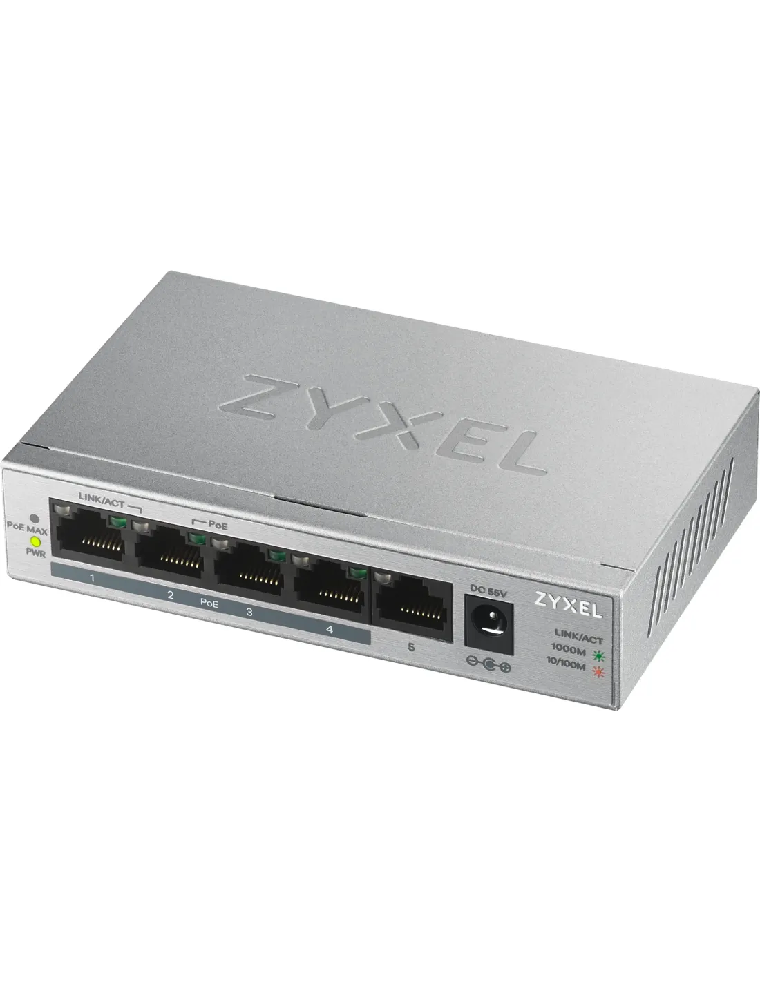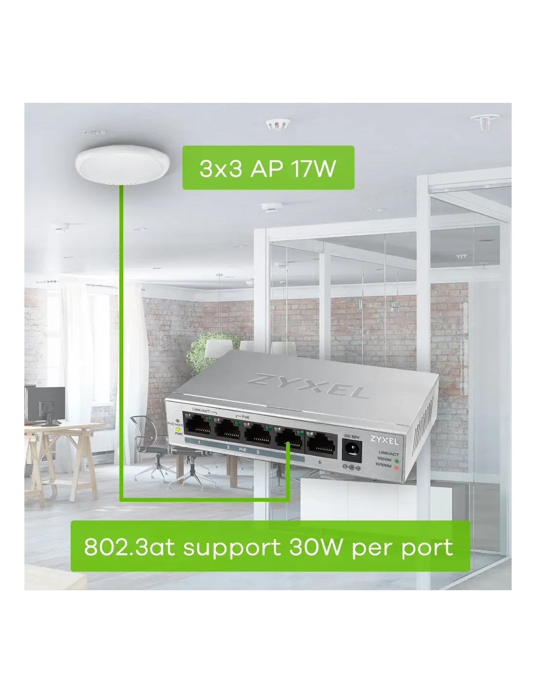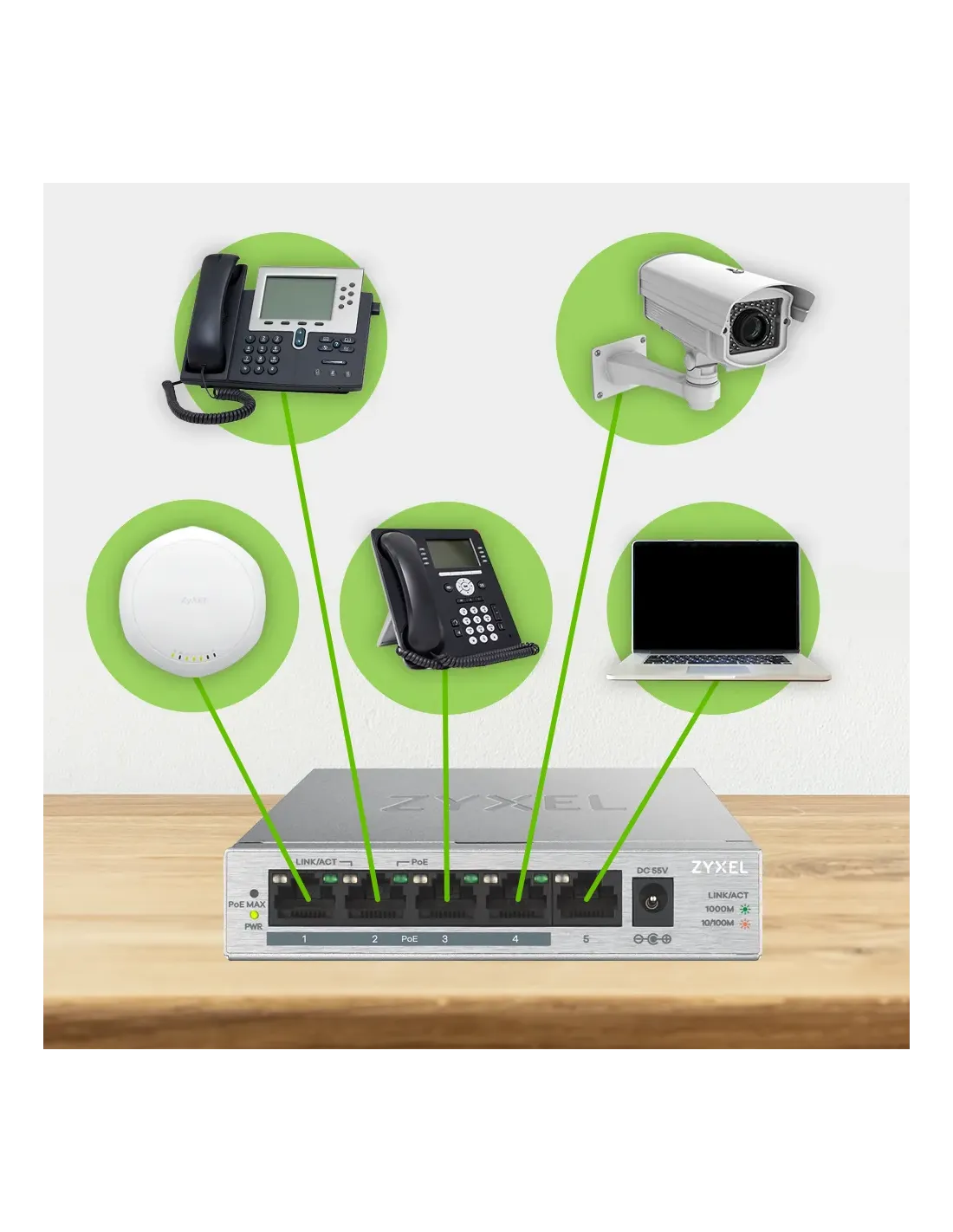 Zyxel GS1005HP, No administrado, Gigabit Ethernet (10/100/1000), Bidireccional completo (Full duplex), Energía sobre Ethernet (PoE)