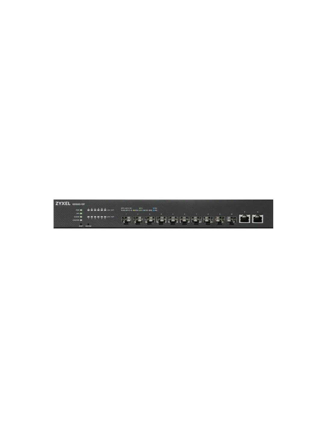 Zyxel XS1930-12F-ZZ0101F. Tipo de interruptor: Gestionado, Capa del interruptor: L2/L3. Tabla de direcciones MAC: 16000 entradas, Capacidad de conmutación: 240 Gbit/s. Estándares de red: IEEE 802.1p, IEEE 802.1w, IEEE 802.1x, IEEE 802.3ab, IEEE 802.3ae, IEEE 802.3an, IEEE 802.3z. Conector eléctrico: Conector de alimentación AC-in. Montaje en rack